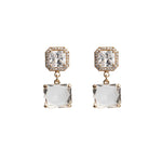 Square diamante drop earrings - vintage feel - this claw set diamanté earring has a detailed top stud, and a proportional clear cut glass drop set in gold.