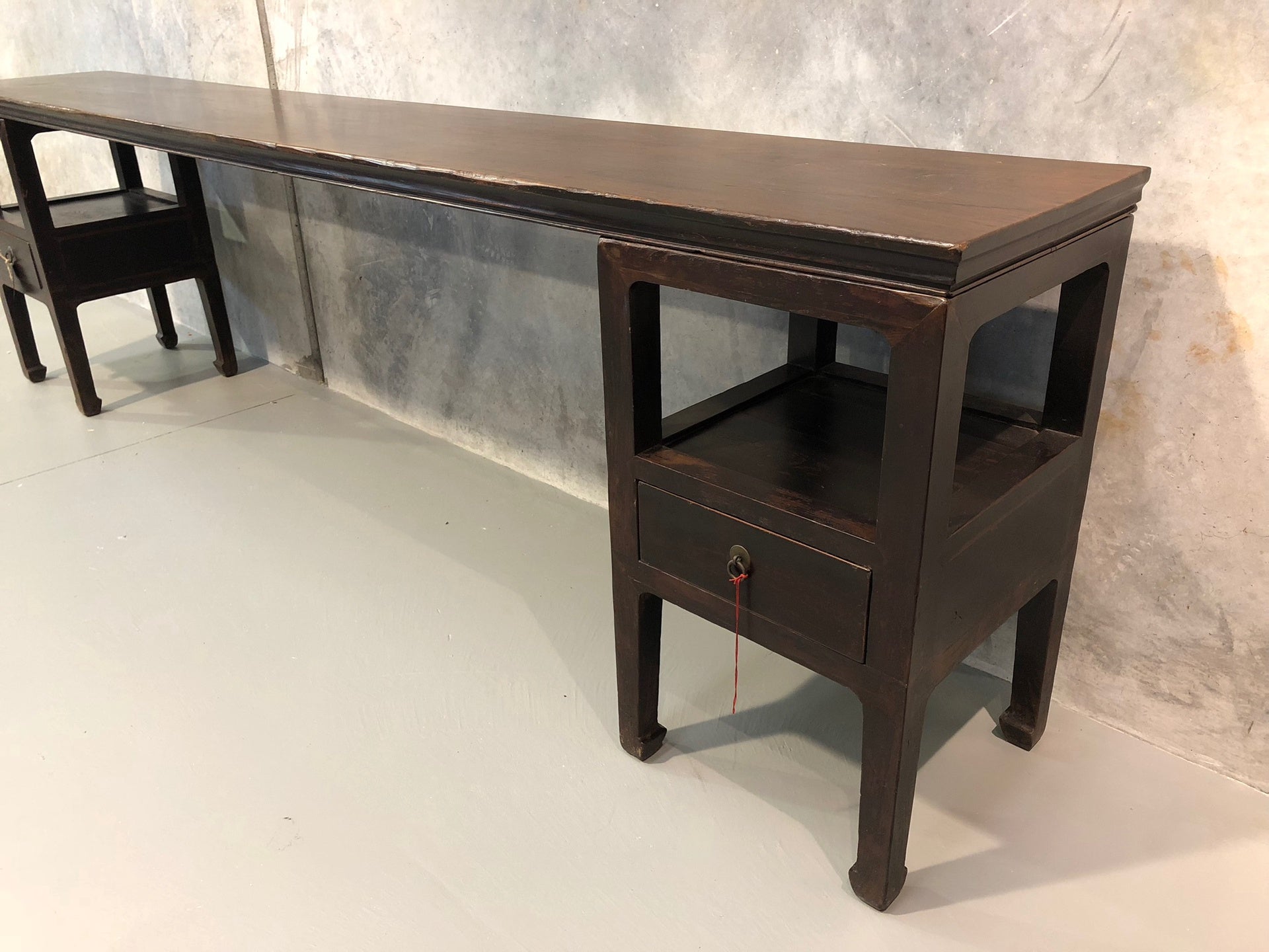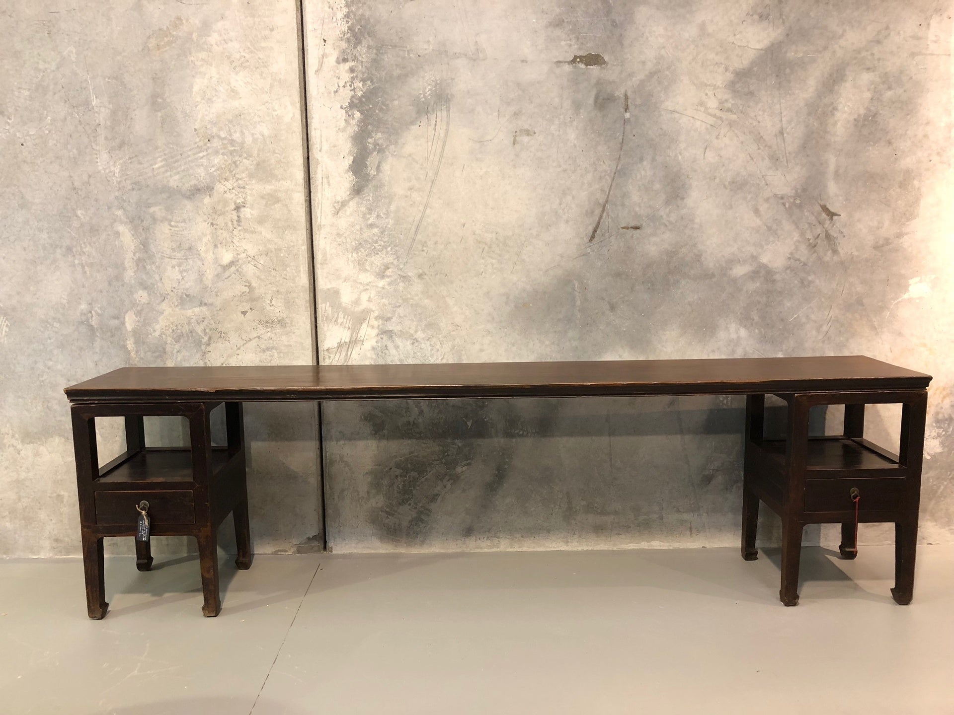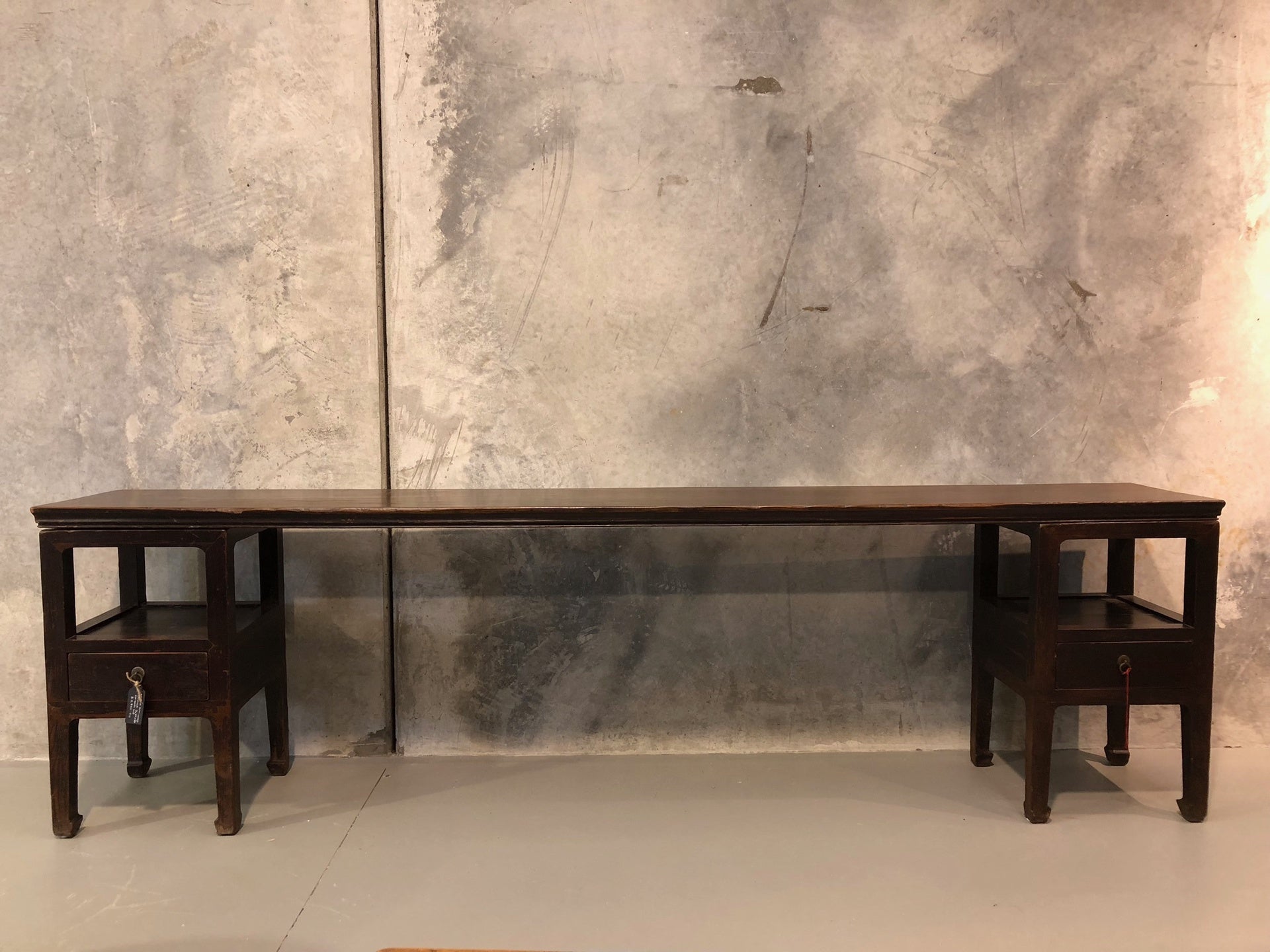 This original console following the Ming Dynasty style is over 200 years old and very rare piece. Legs can be moved to allow for different configurations as this comes in three separate pieces. A truly stunning piece that needs to be seen to be appreciated!