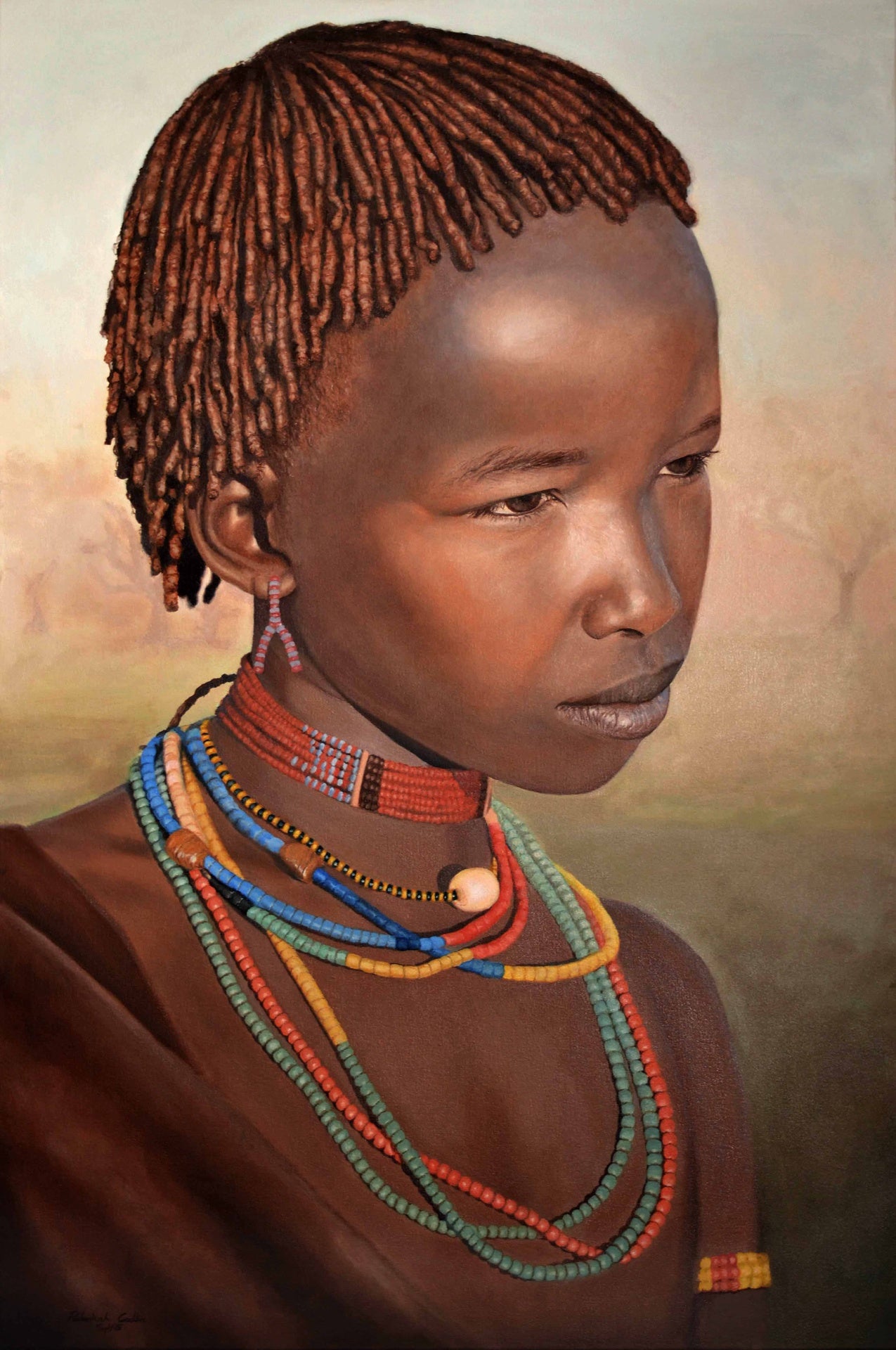Dimensions - Charlie 4, Hamer Girl 2 and Suri Girl 30 x 30 cm African Rain and Hamer Girl 40 x 27cm, Journey 40 x 28 cm