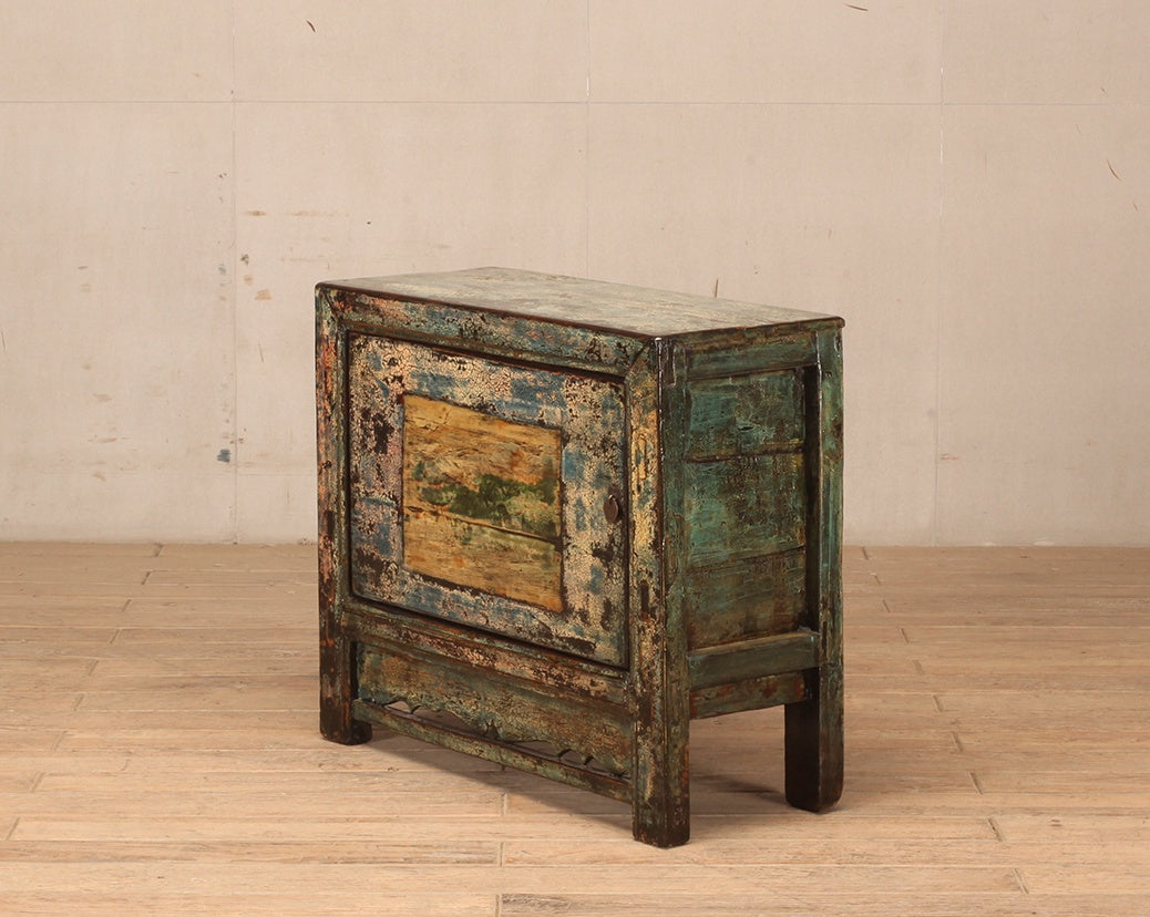 Cabinet 1 Door c 1920 Green Crackle with Green / Yellow Painting