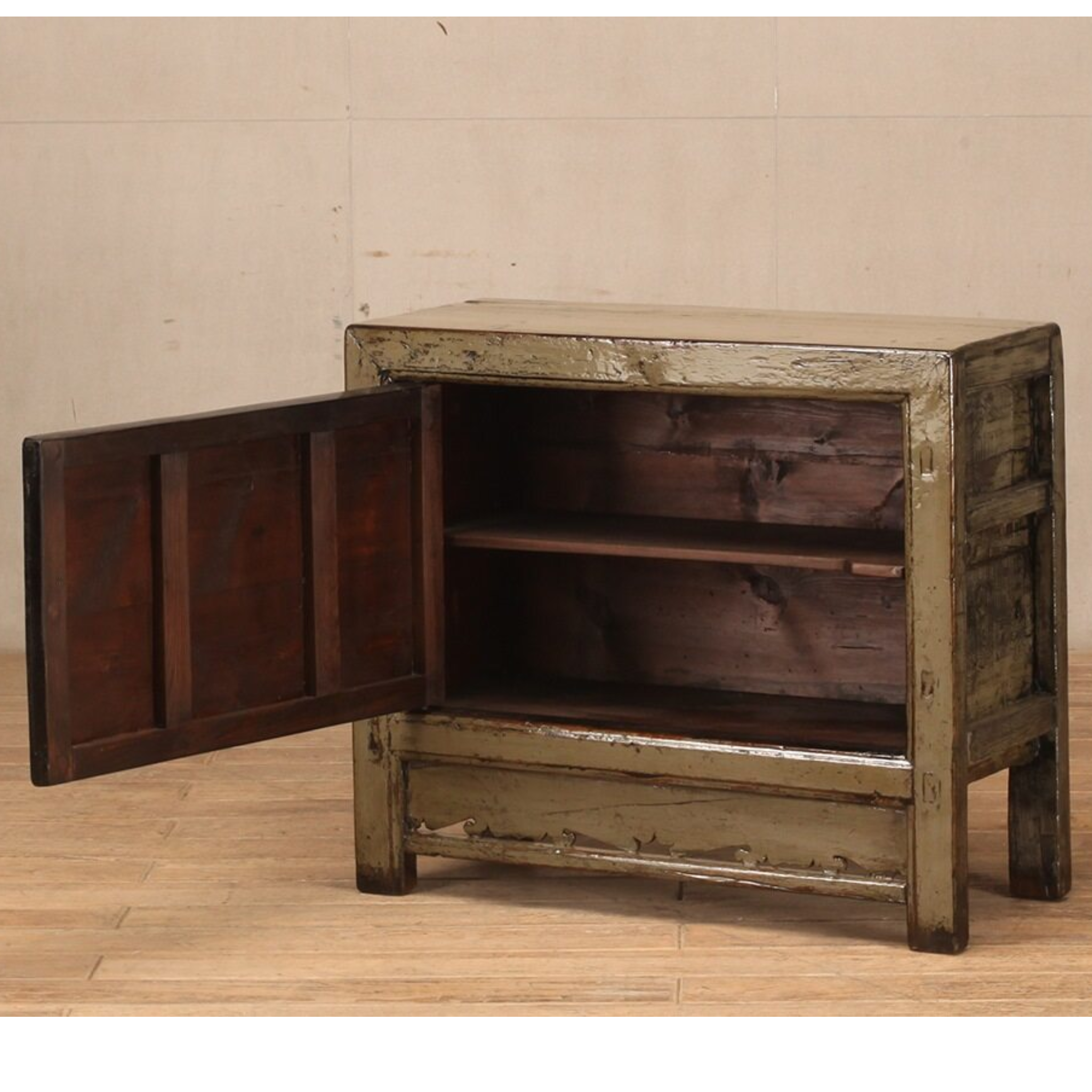 Cabinet c1900 finished in green lacquer - with traces of the original painting that would have featured. The cabinet features a large single door. Made from pine (northern).