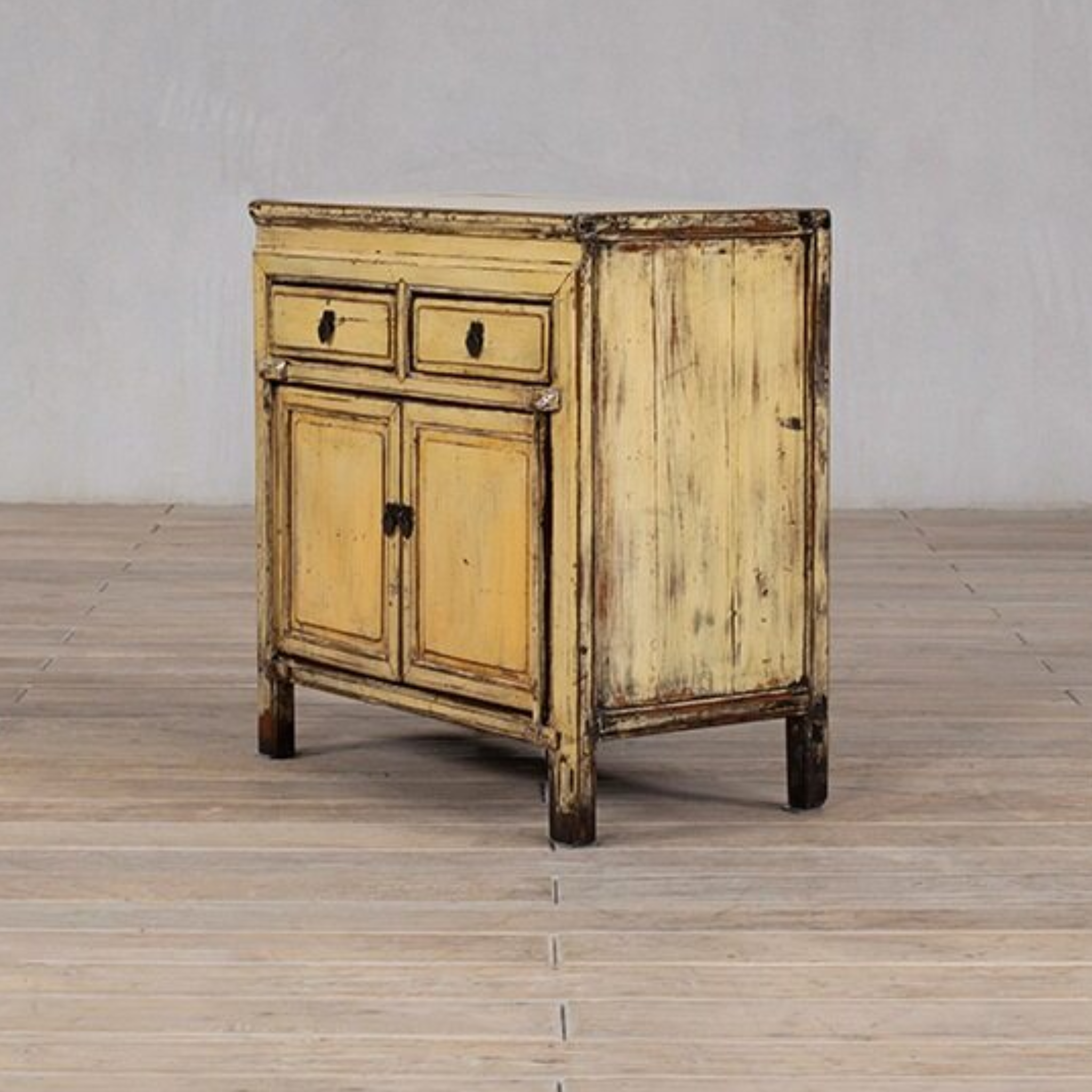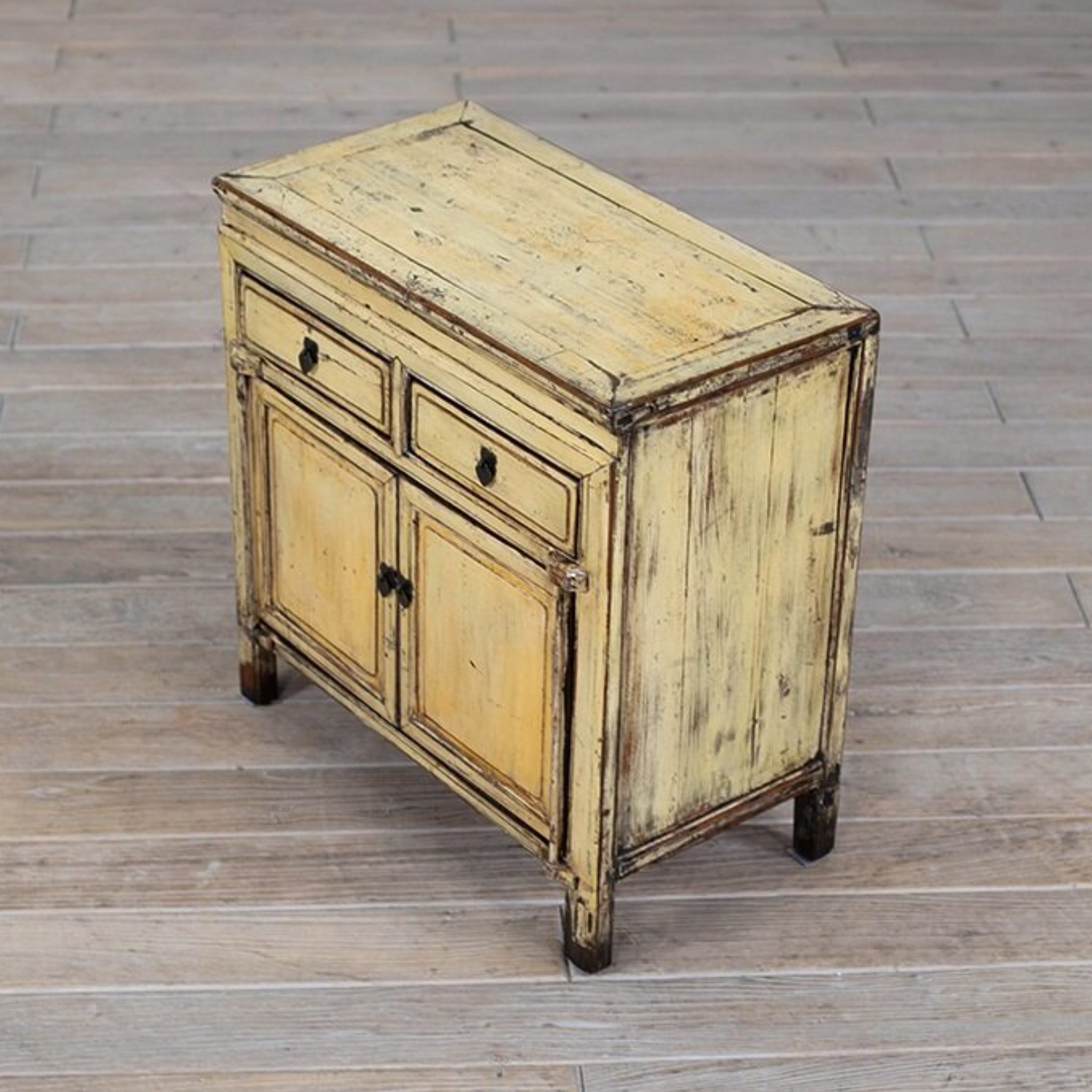 Cabinet - c1920 Creamy Yellow Lacquer - 2 Doors 2 Drawers