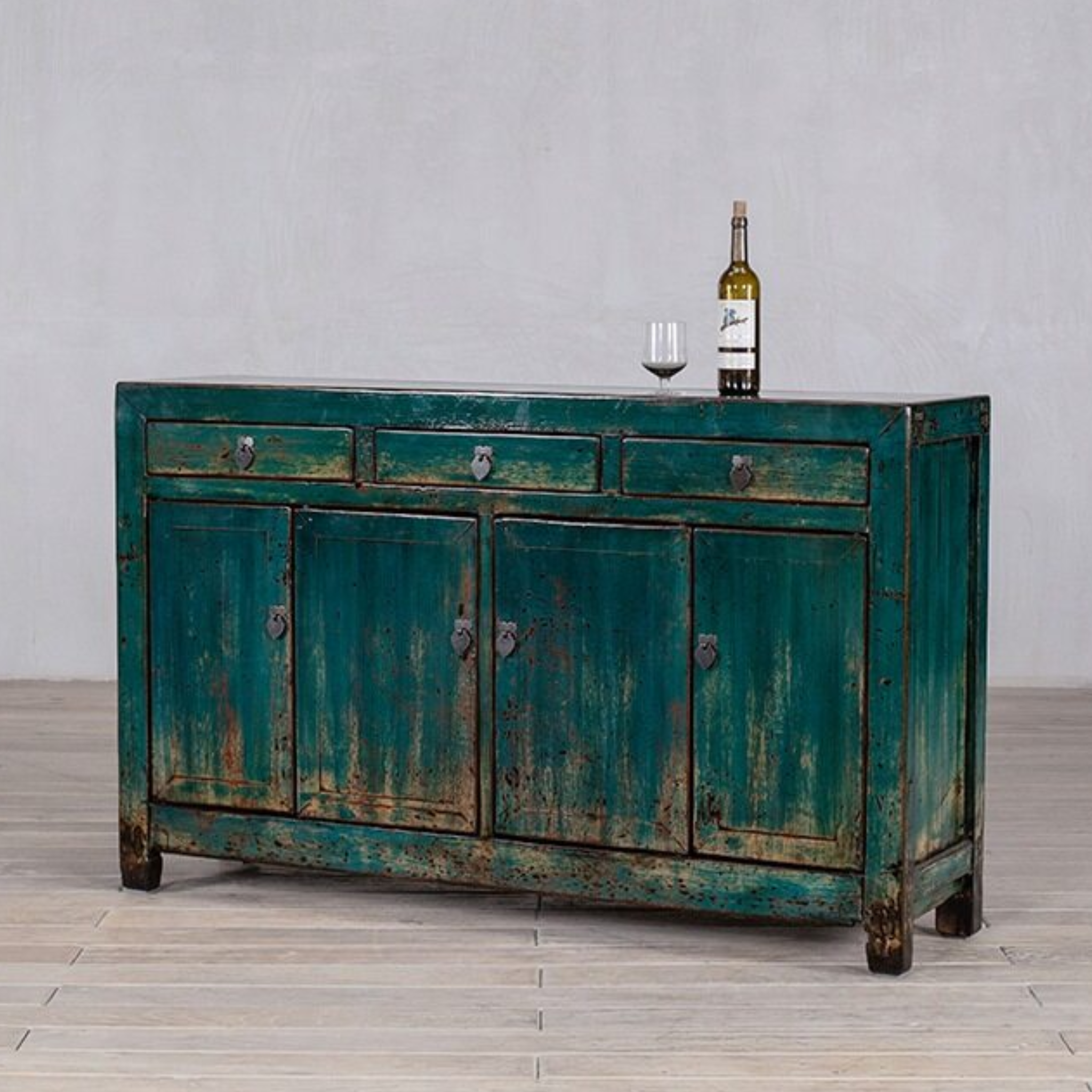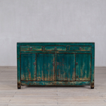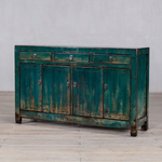Cabinet or sideboard c1920 - finished in jade green lacquer. The cabinet features two cupboards with with double doors - and three drawers above. Made from elm.