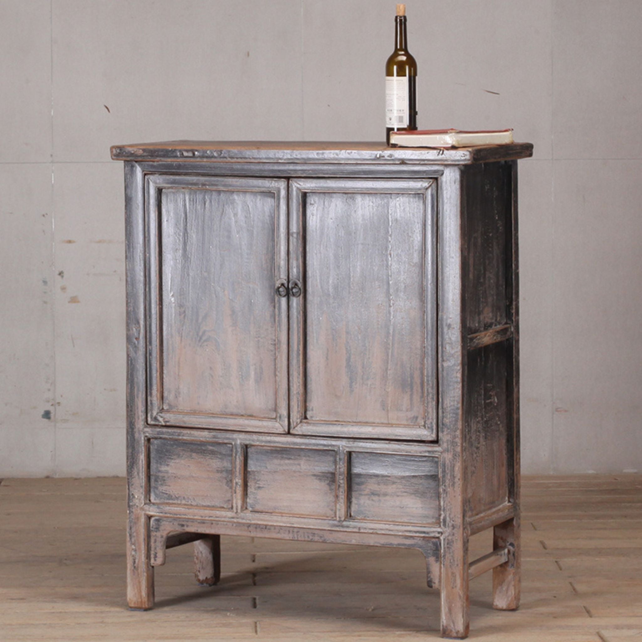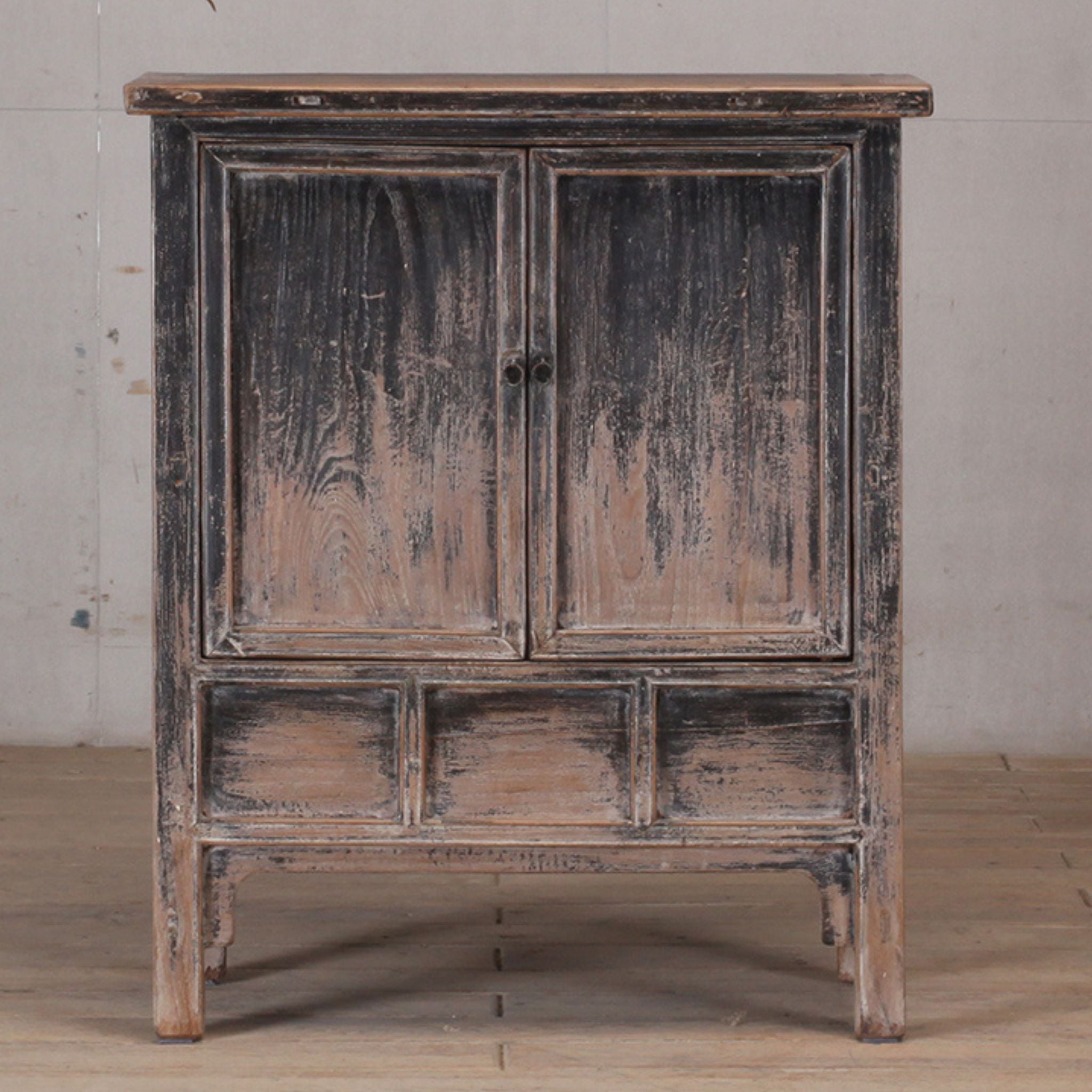 c1920s - traditional style cabinet - with two doors - with iron ring pull handles. This beautiful piece is finished in a blackwash - with the original timber showing through.