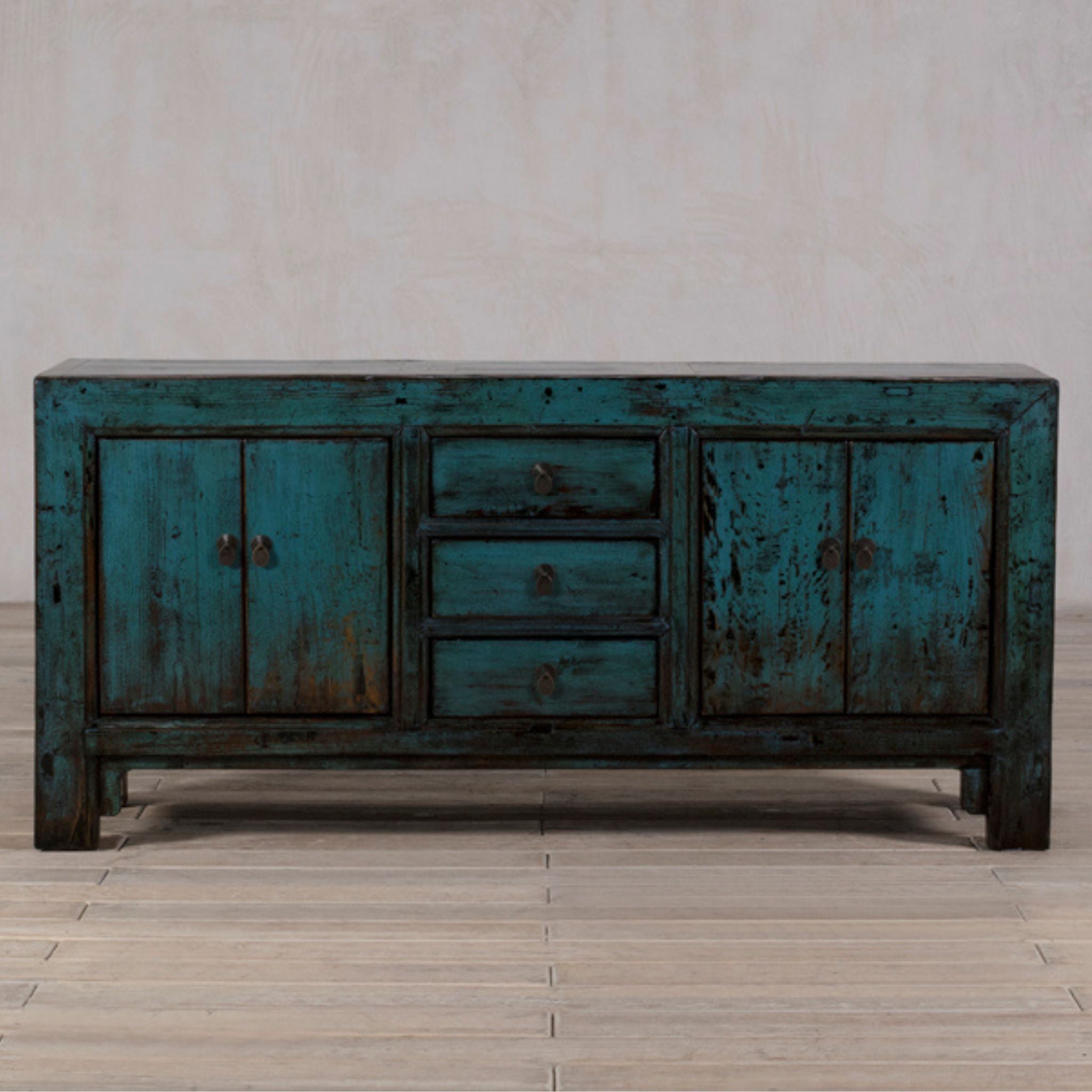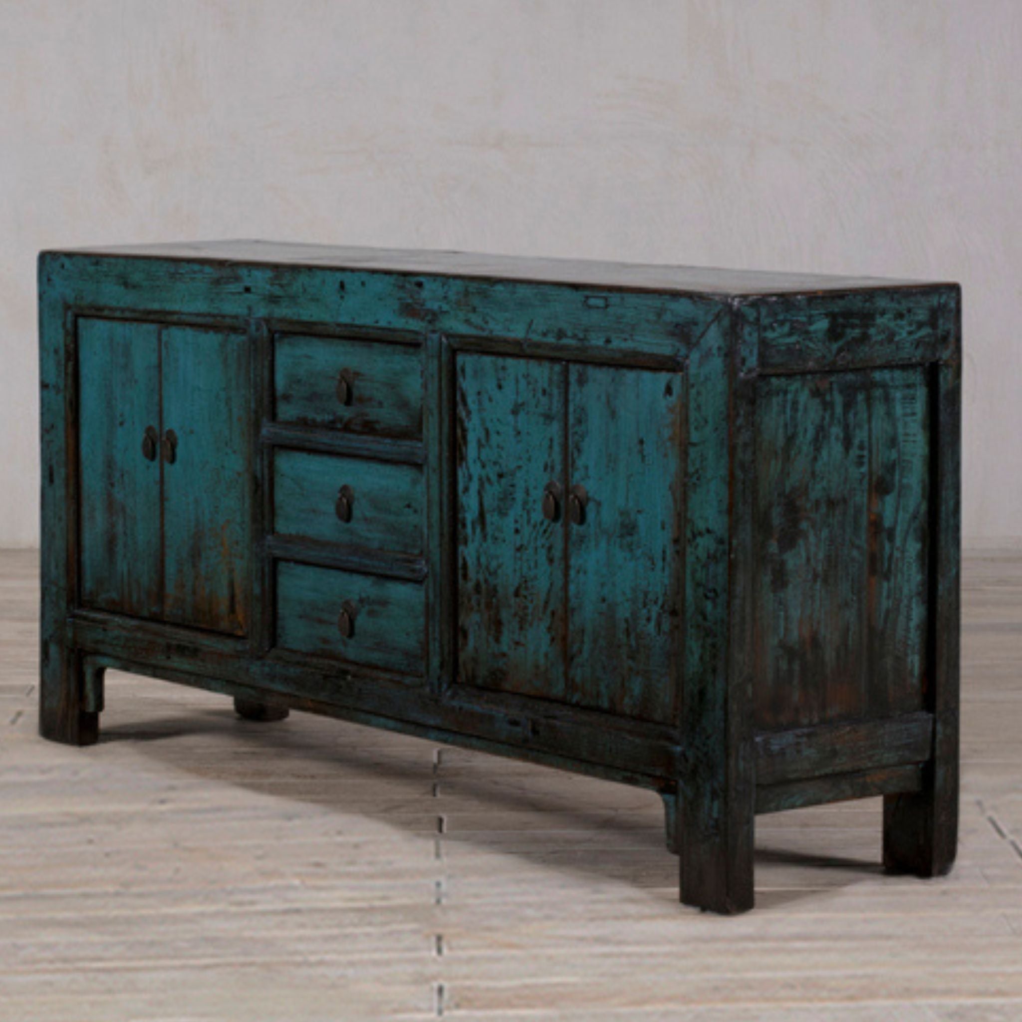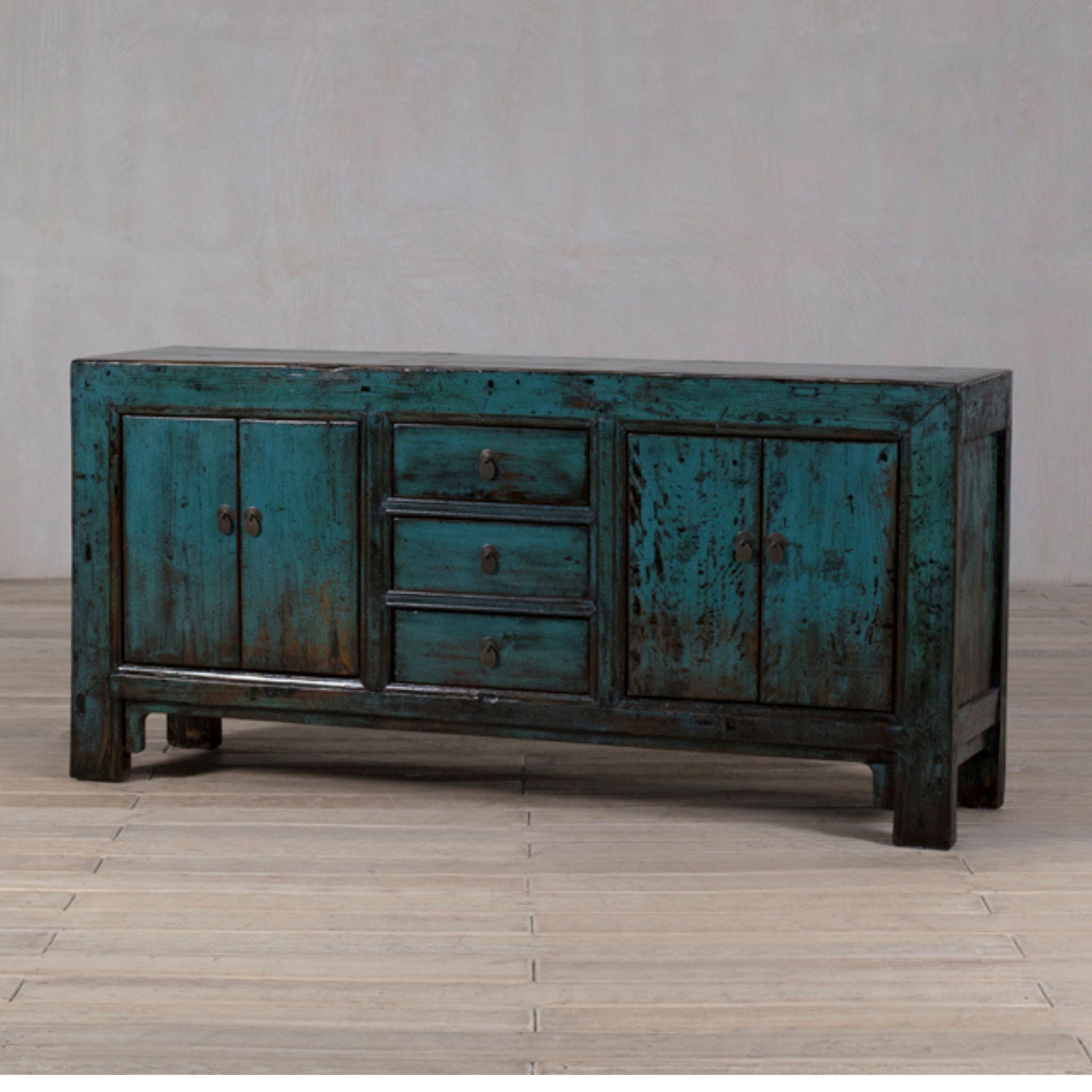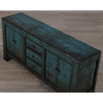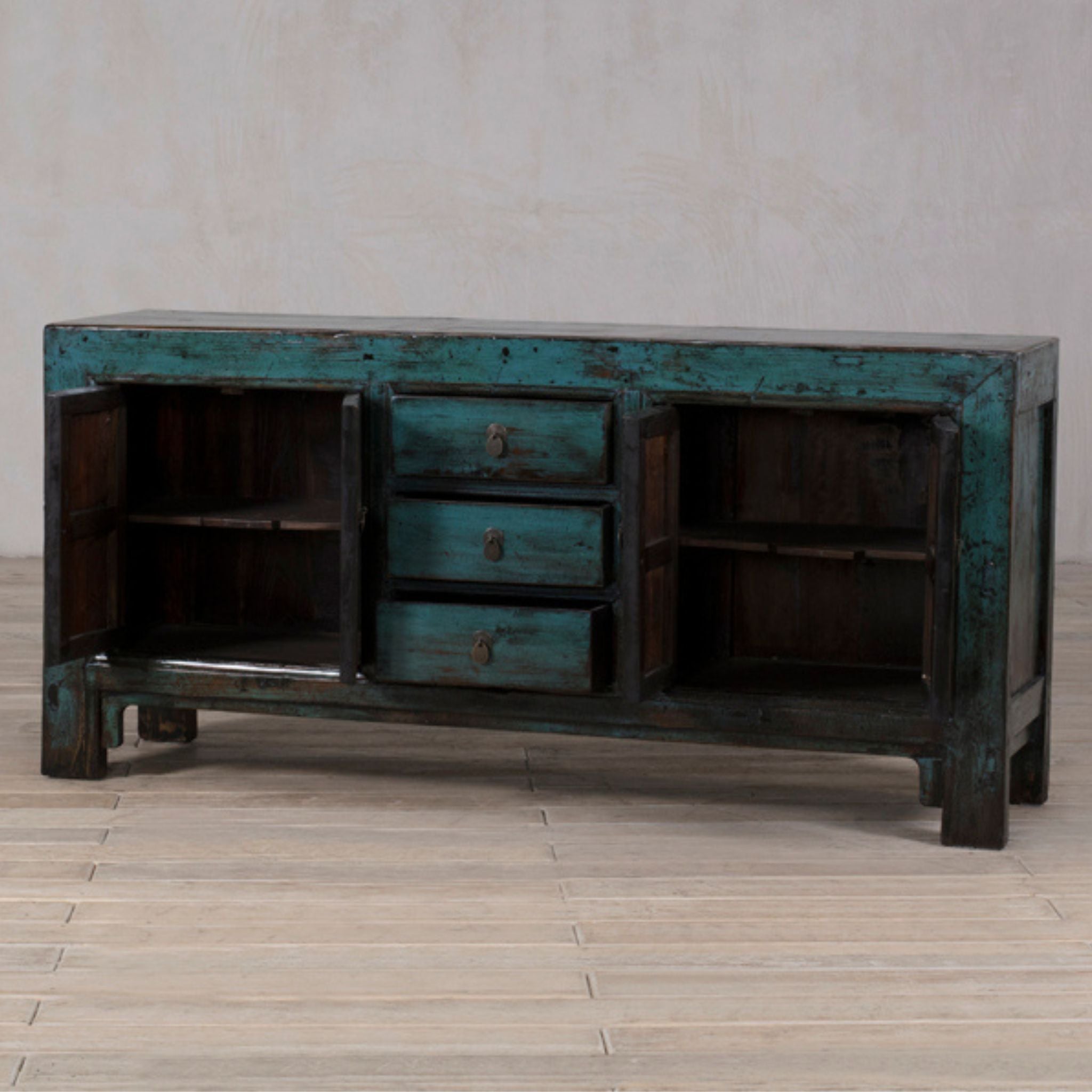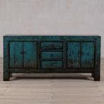 c1920s Cabinet - features 2 drawers in the centre - plus a set of double doors at each end. The finish is a stunning teal blue lacquer with black undertones.