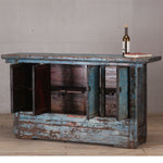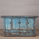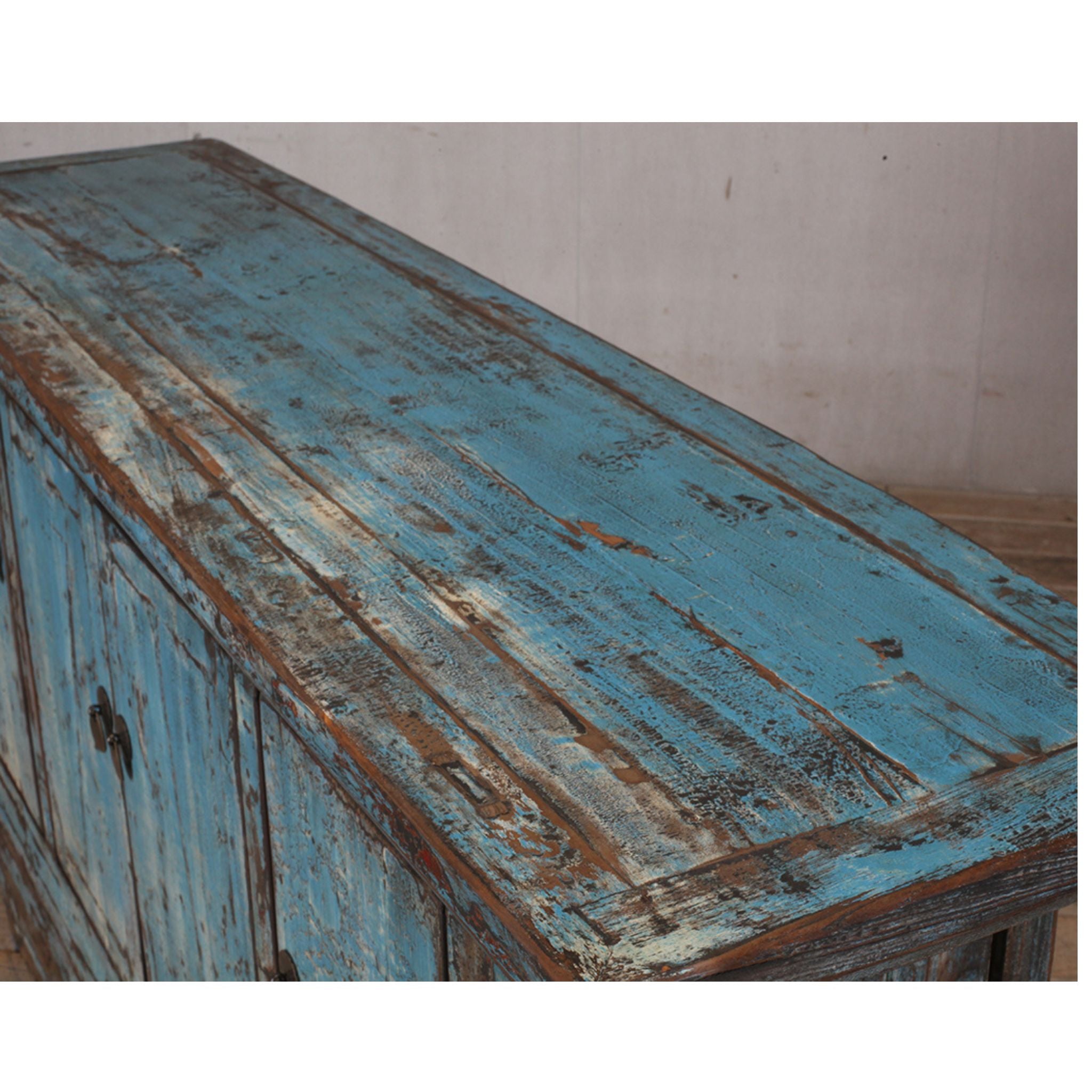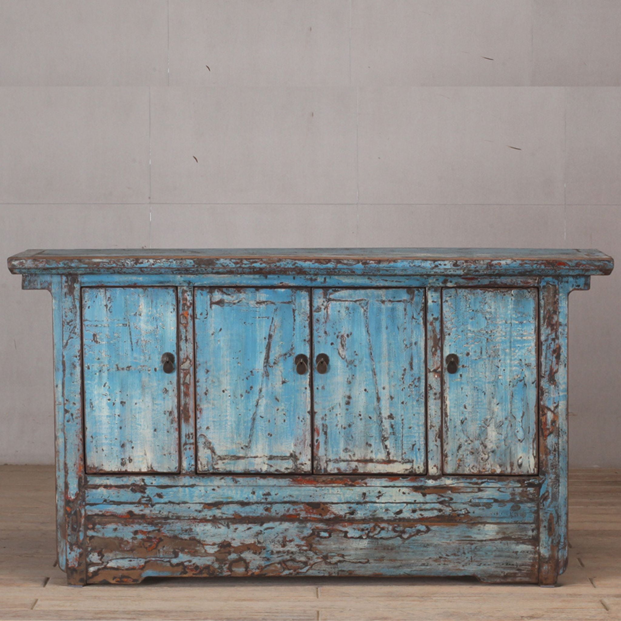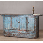 c1920s - cabinet with four doors - finished in a beautiful pale blue lacquer with rubbed finish - showing tones of white, black and the natural wood showing through.
