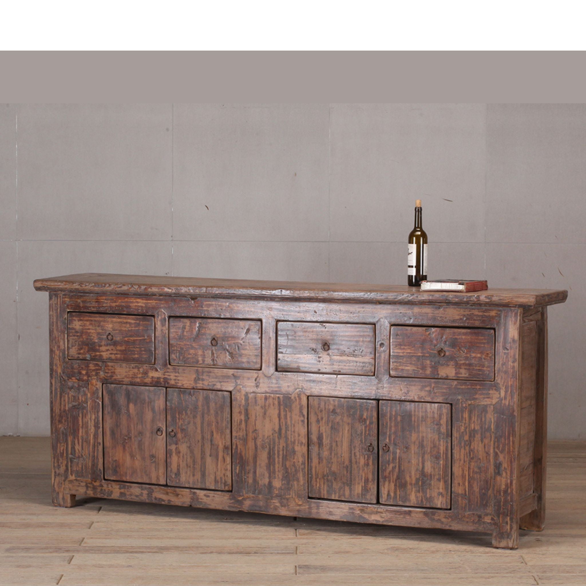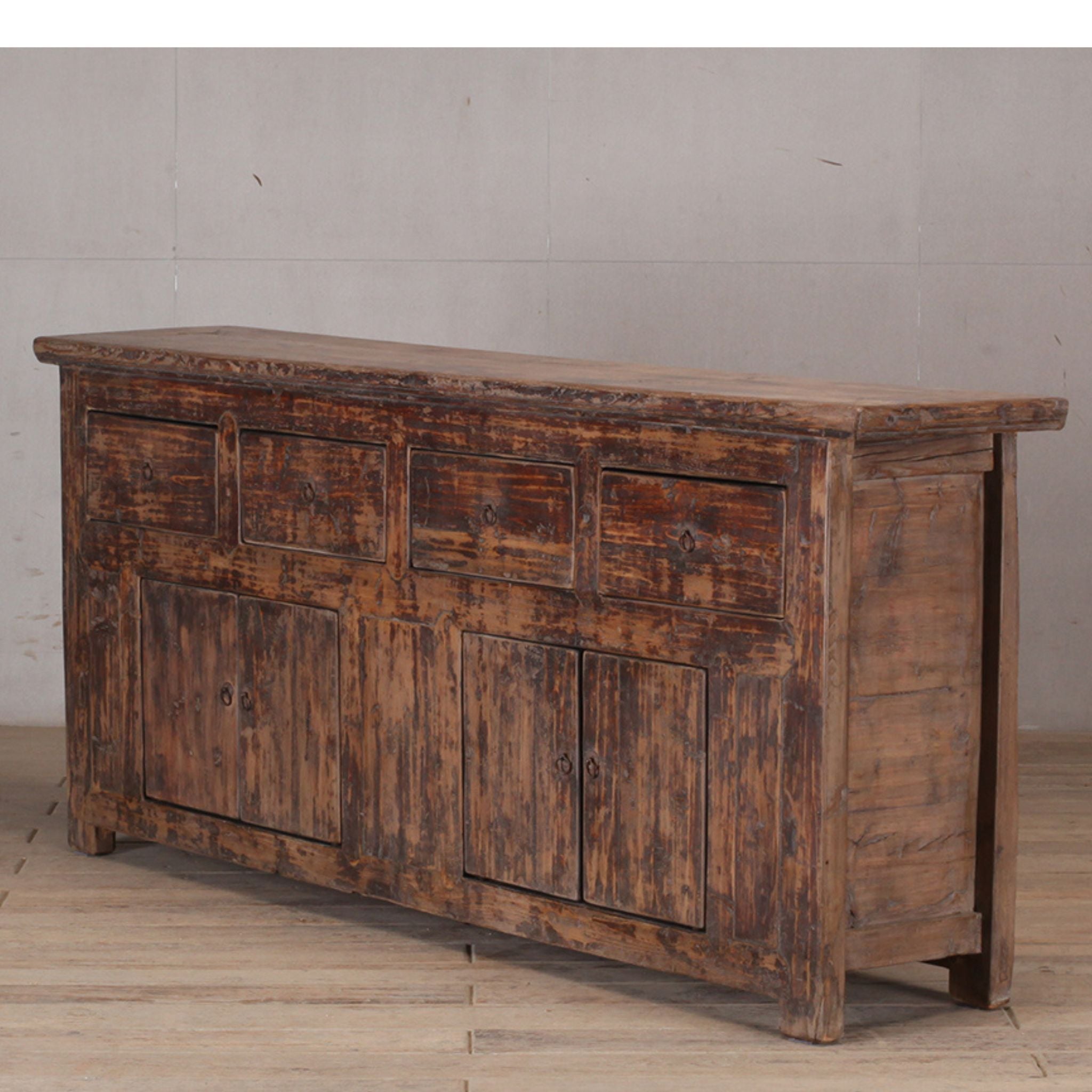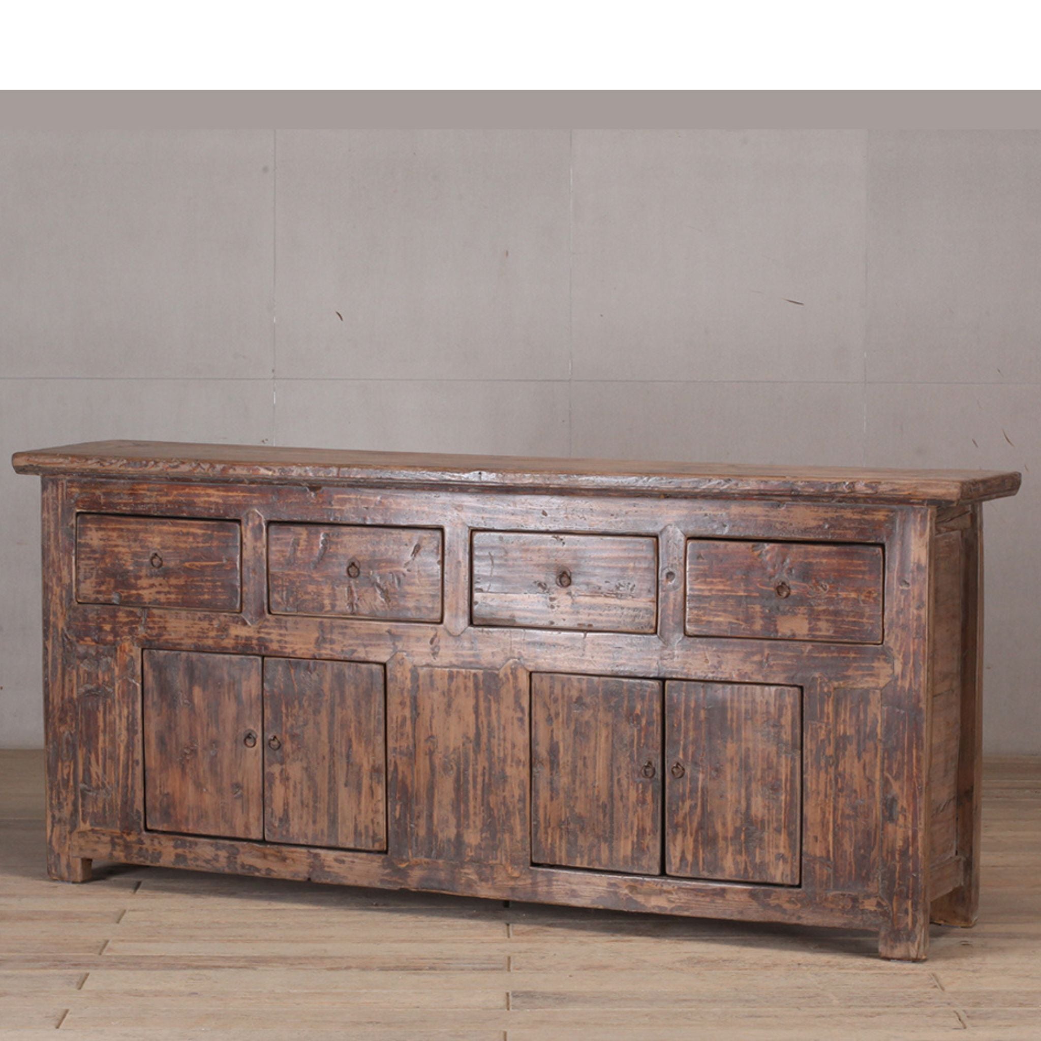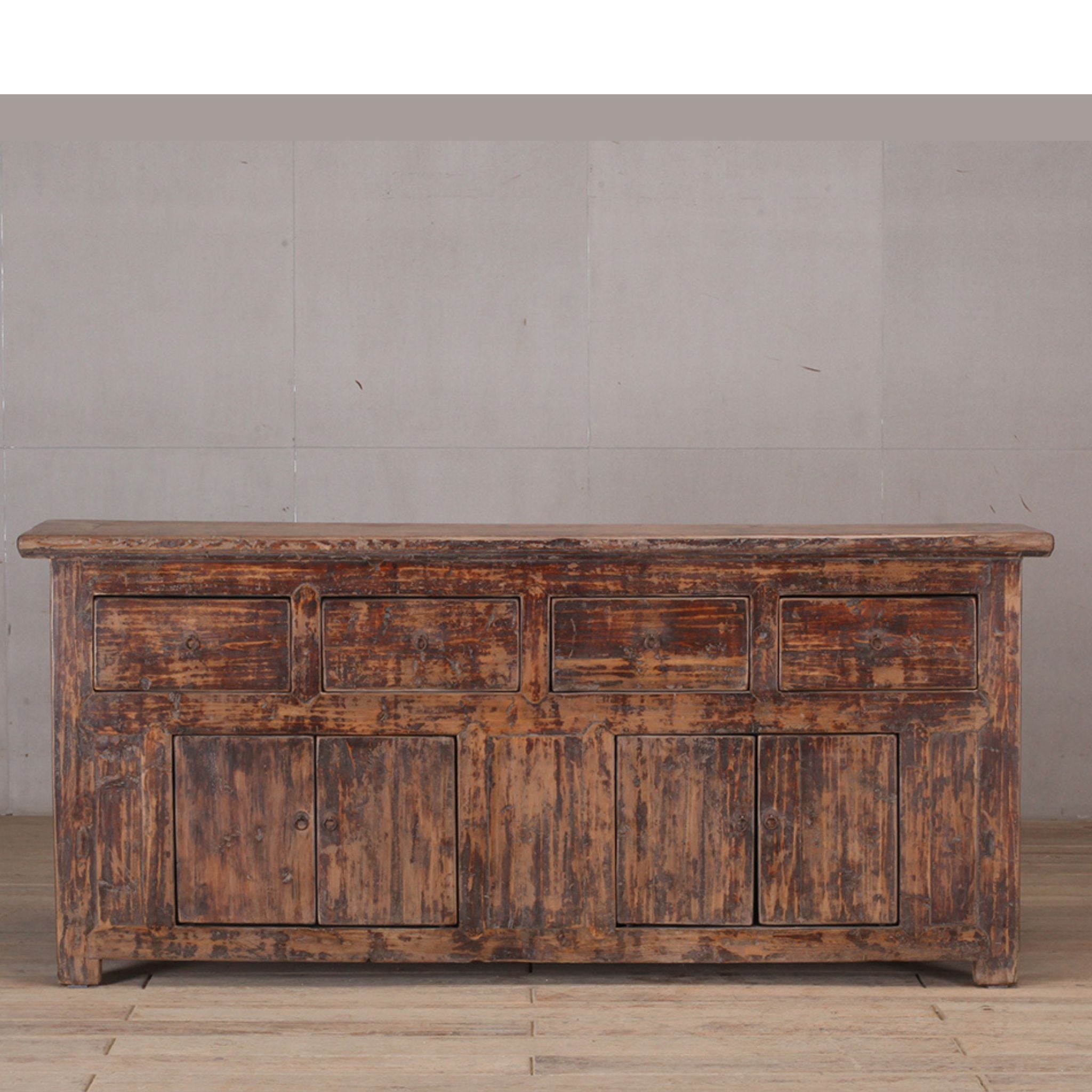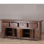 Cabinet or sideboard featuring 4 Drawers - and 2 sets double doors. Finished in black wash - with slight shine. An original piece from the 1920s - refurbished and refinished - with a modern twist with the painted finish.
