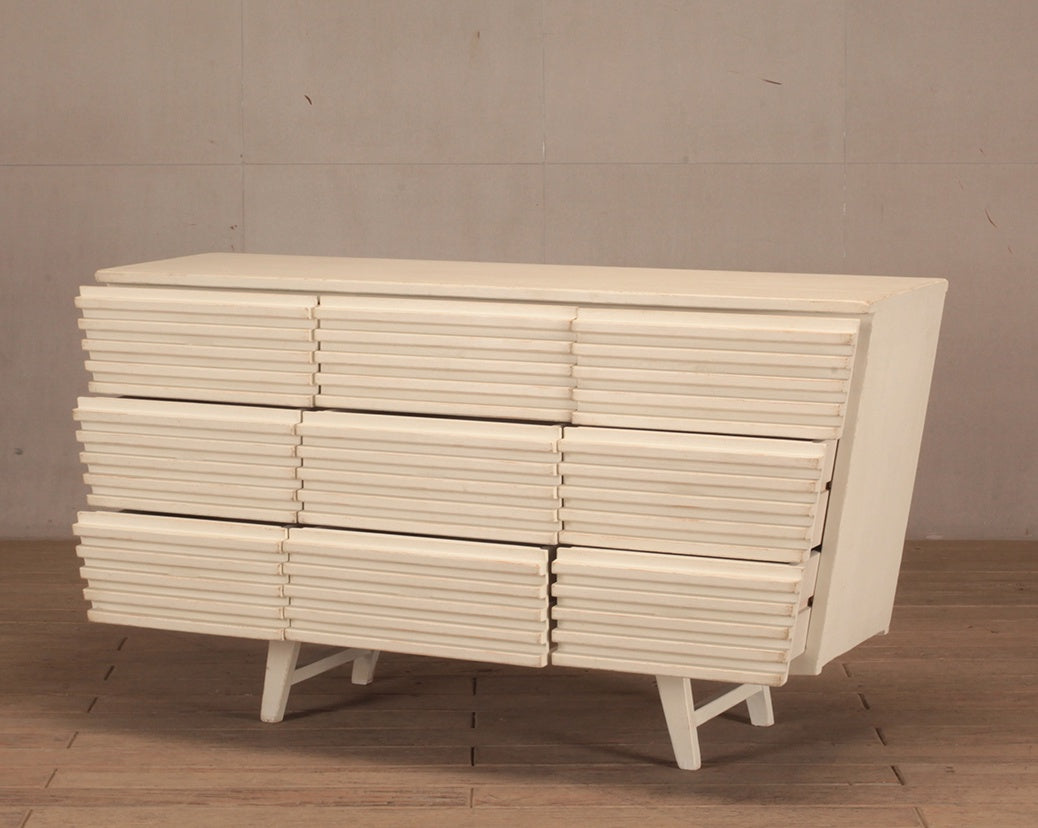 Chest with 9 drawers. Batten detail on front - white washed finish. Newly made from reclaimed wood.