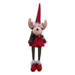 Add something cute to your Christmas decor - with this quirky soft toy decoration - Ruby Red Sitting Deer Girl - all dressed up in her Christmas Red dress.
