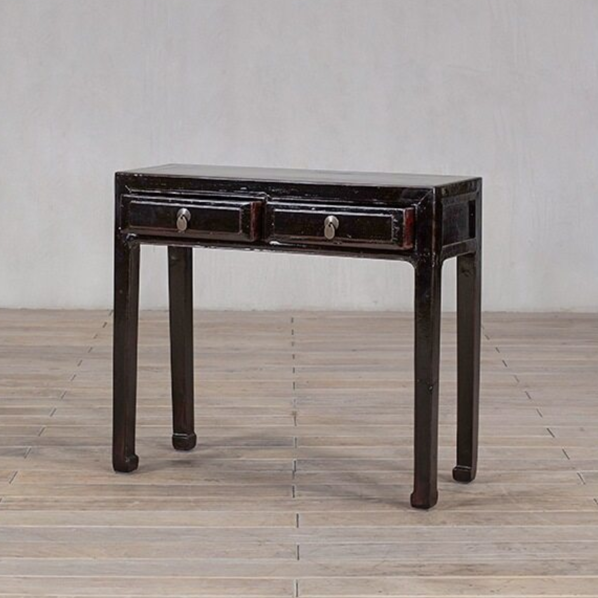 Console - c1900 Black Lacquer 2 Drawers