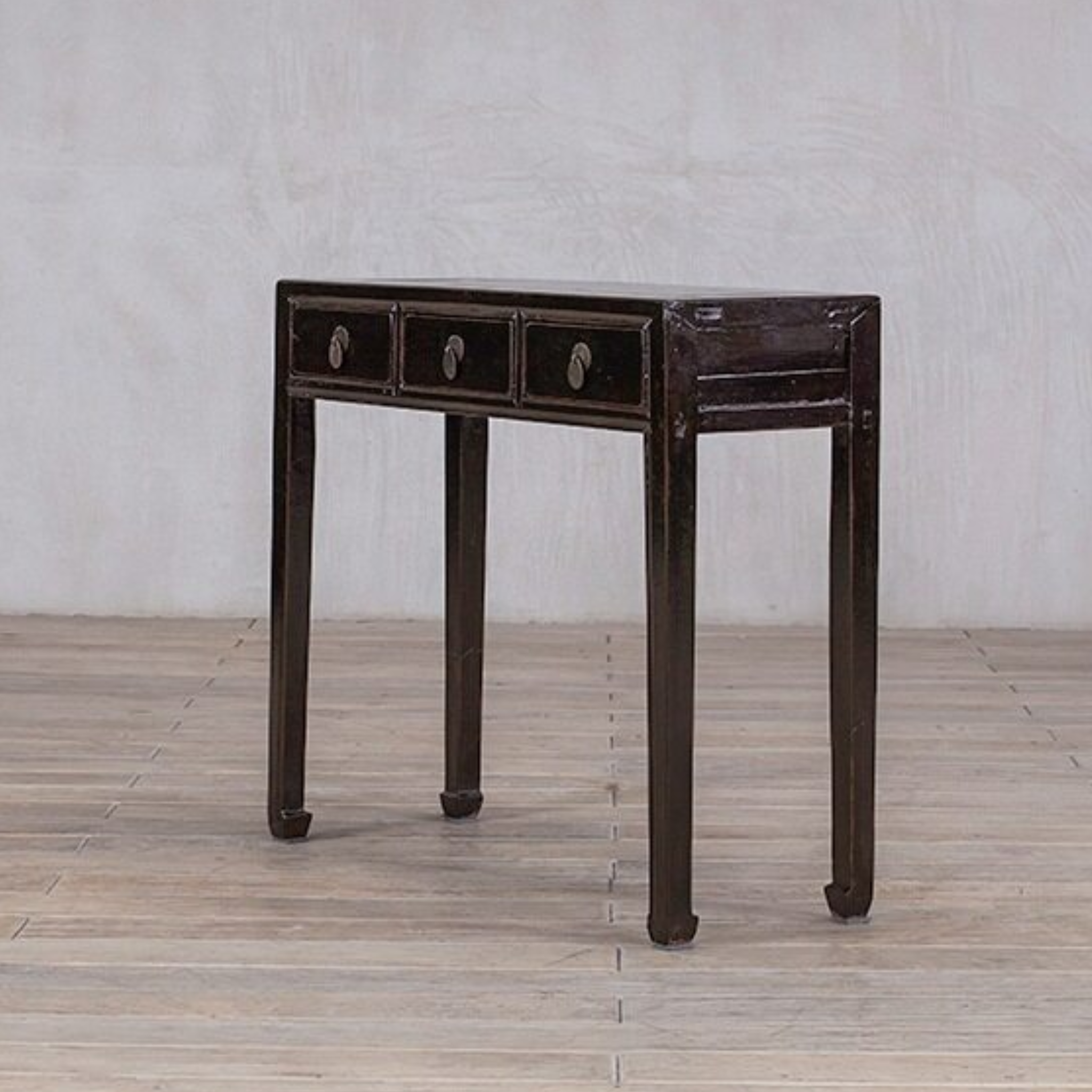Console table - c 1920s finished in black lacquer. Has three drawers offering great storage.