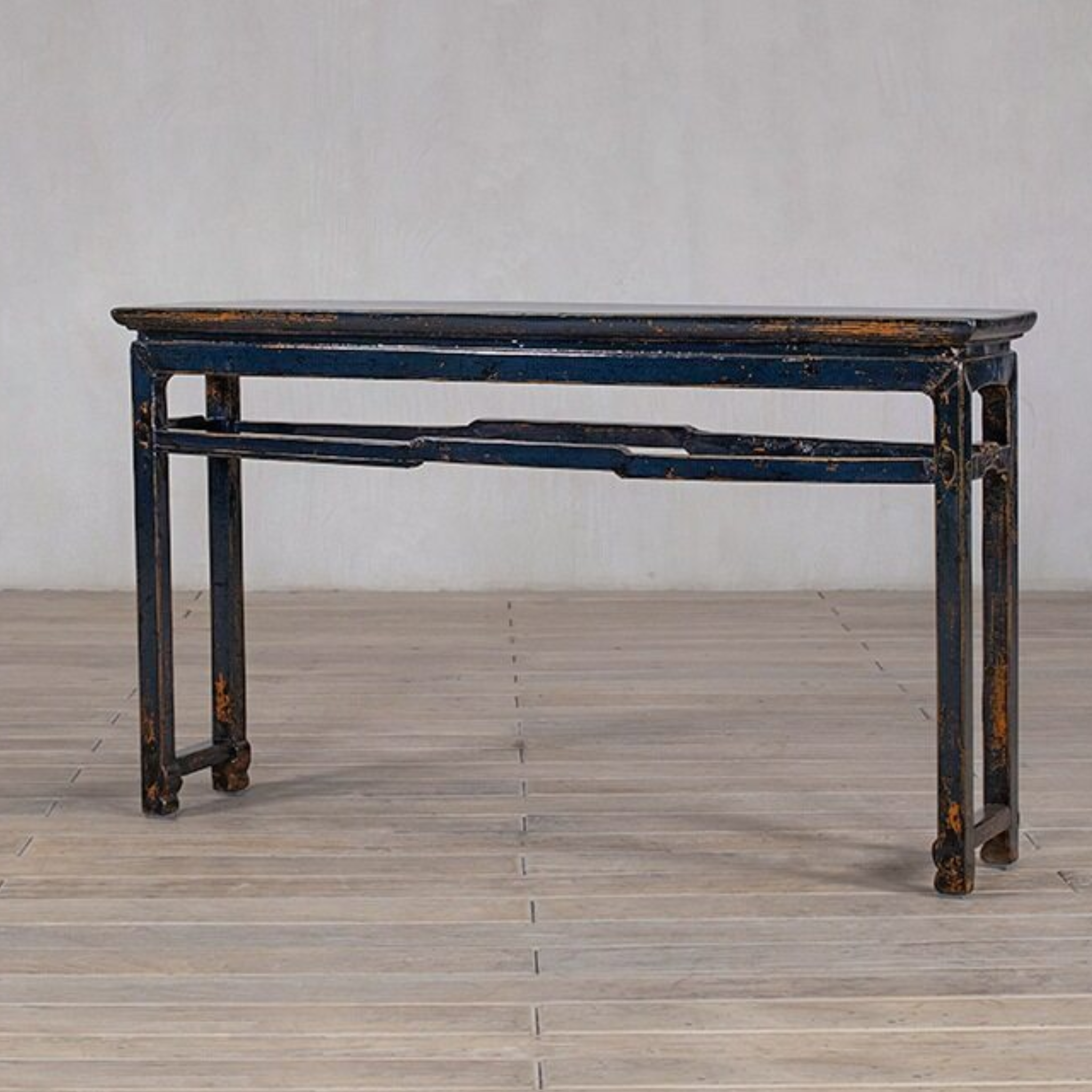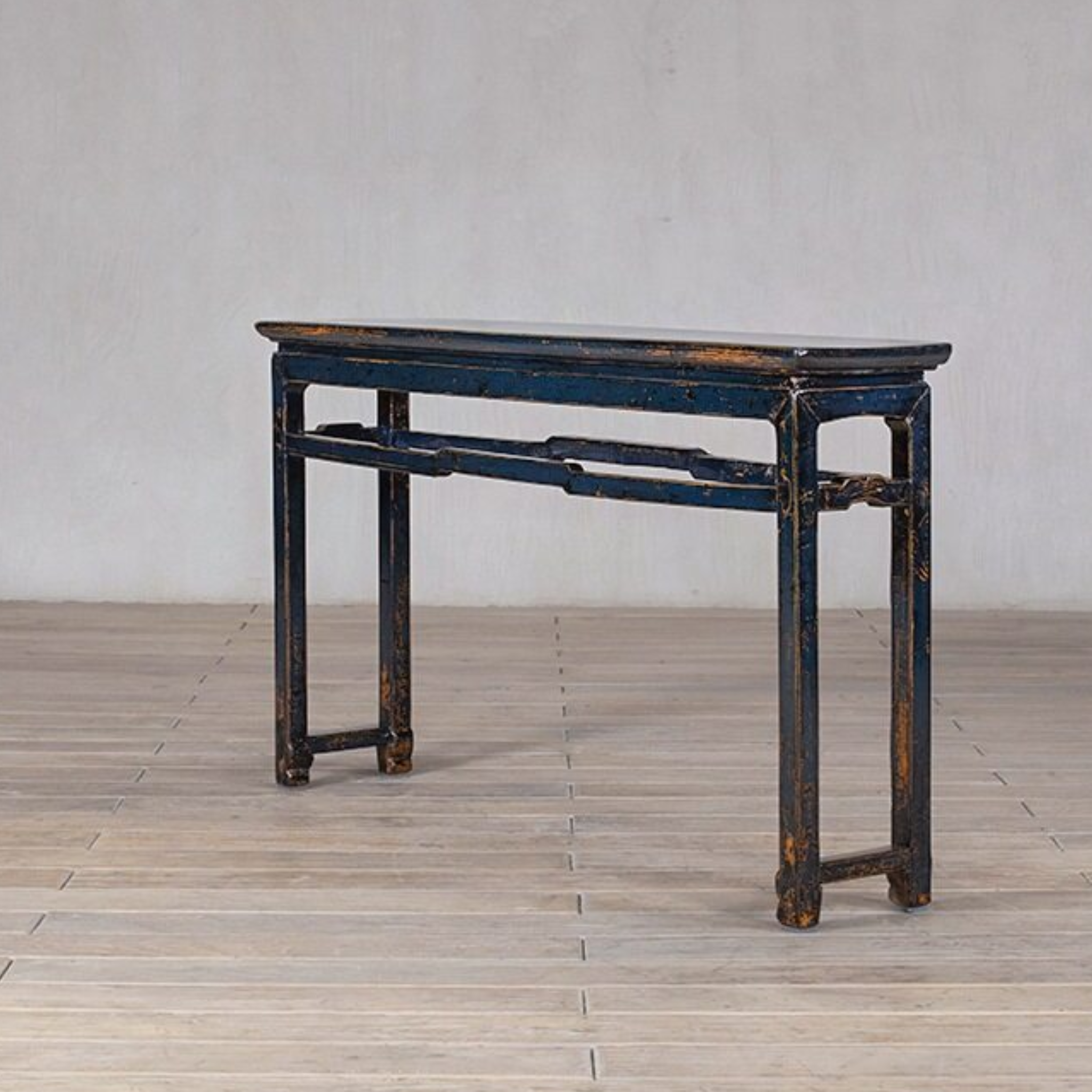Console table - c 1920s rail detail. Finish is lacquer in deep blue from Shanxi province.
