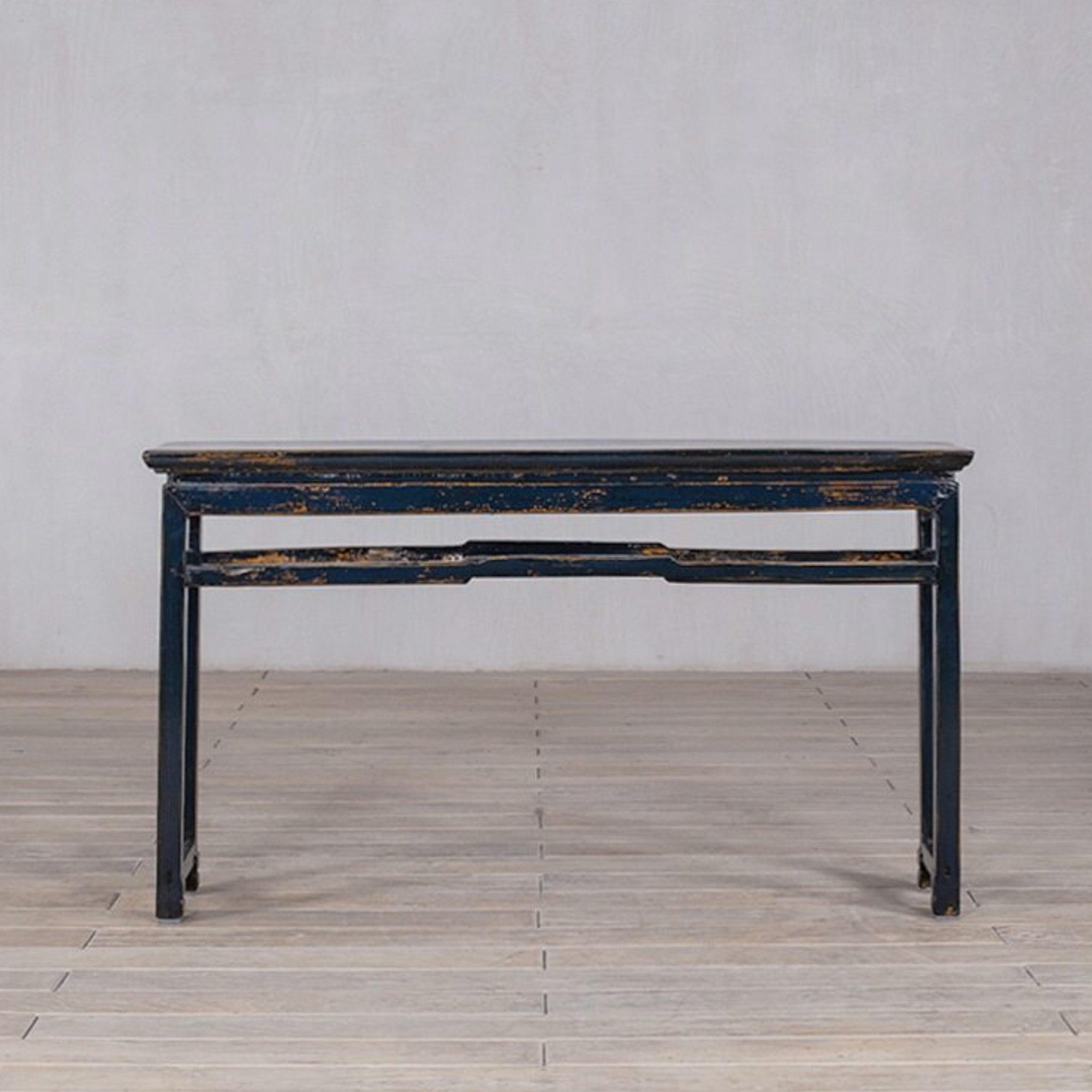 Console table - c 1920s rail detail. Finish is lacquer in deep ocean blue