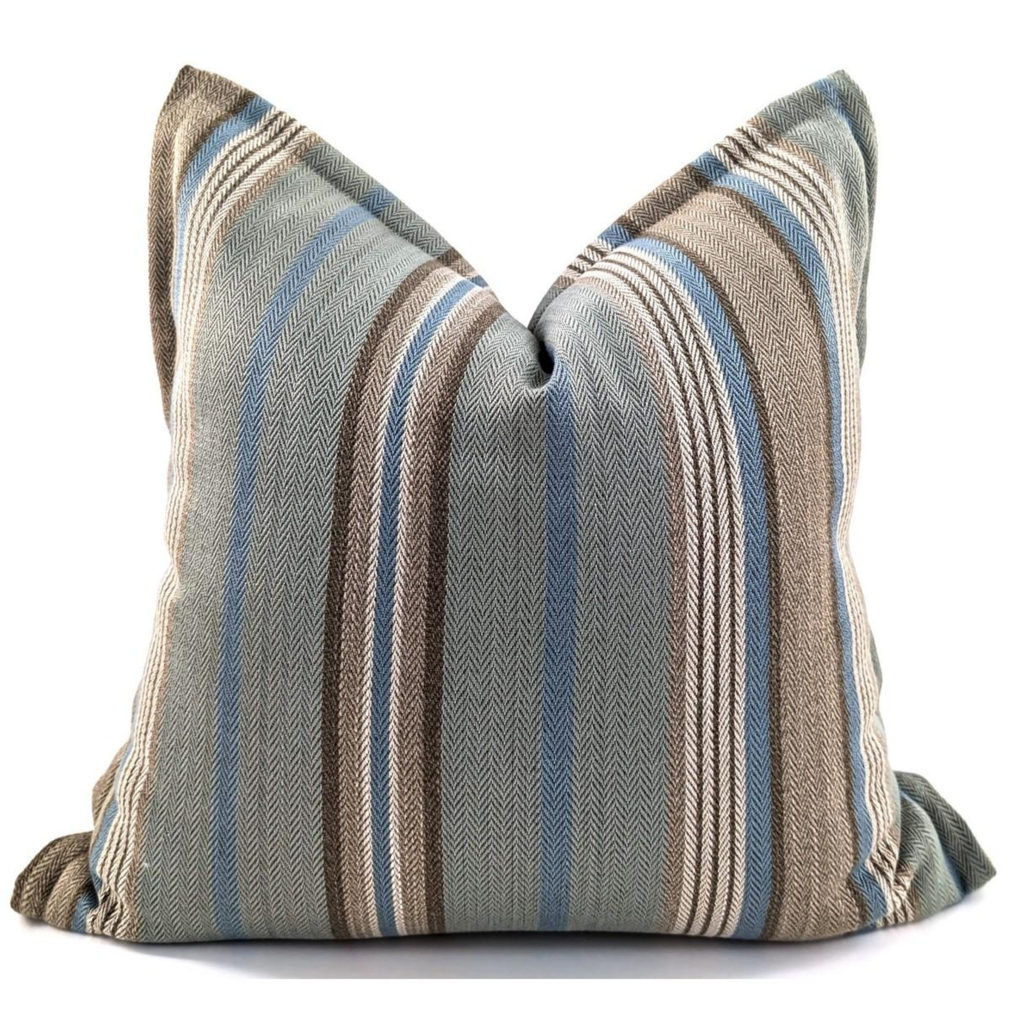 Cushion cover - stylish stripe with herringbone pattern - in teal and natural.