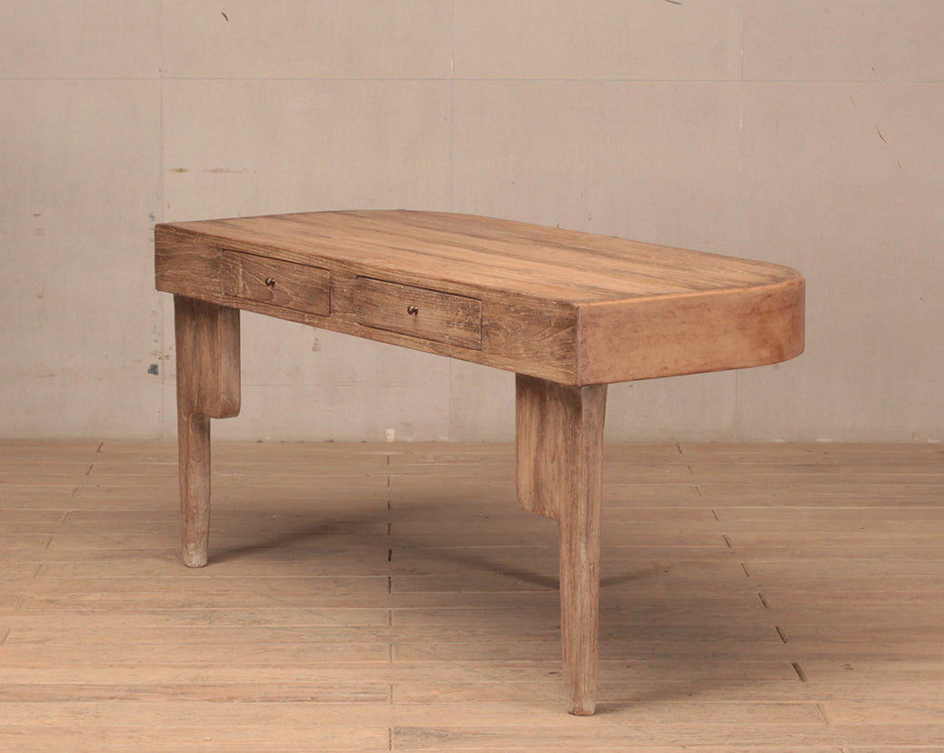 Super stylish desk - featuring curved edge and two drawers. Dry grind finish. Newly made from reclaimed wood.