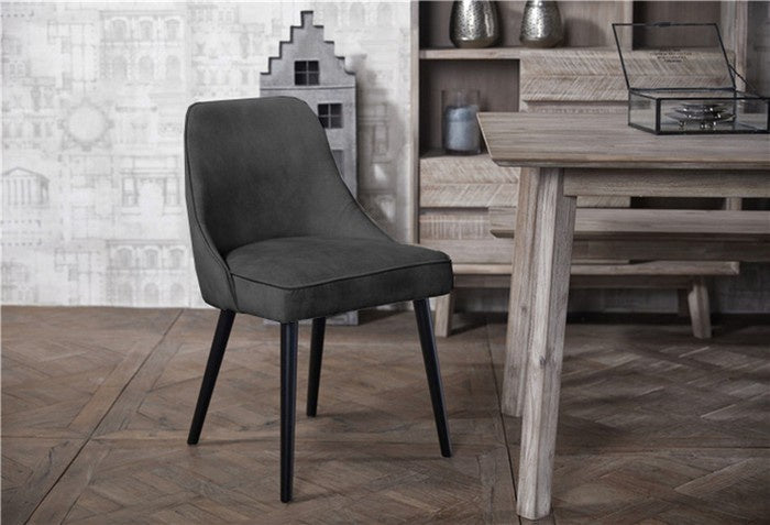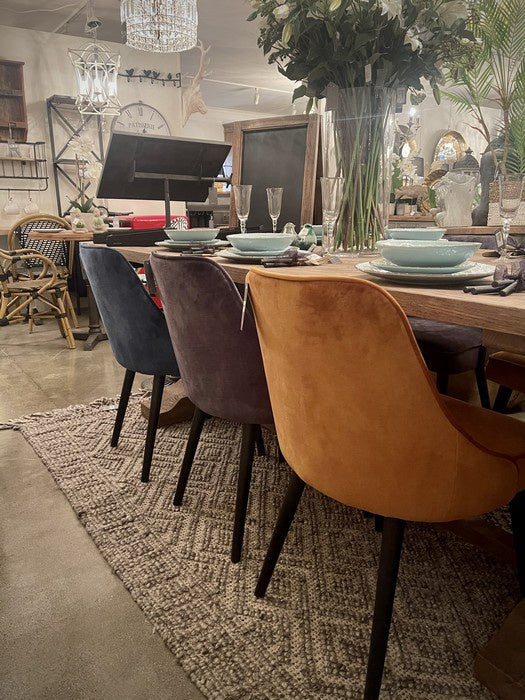 These very comfortable dining chairs in a velvet fabric come in three colourways.