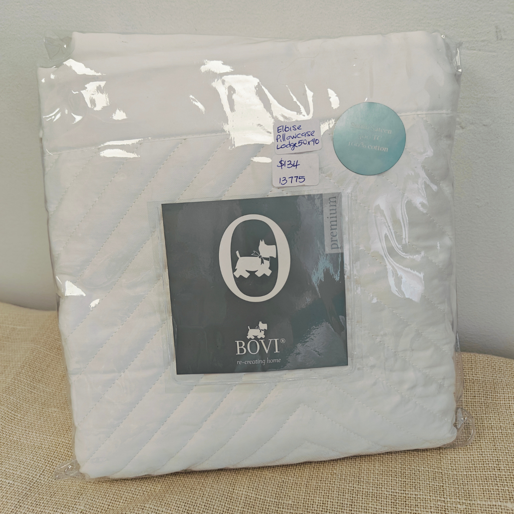 Luxury 100% cotton satteen (300TC) pillow case with diagonal chevron raised stitched design - in a beautiful crisp white. Stunning european quality bed linen.