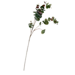 Spray of eucalyptus with green/brown leaves.