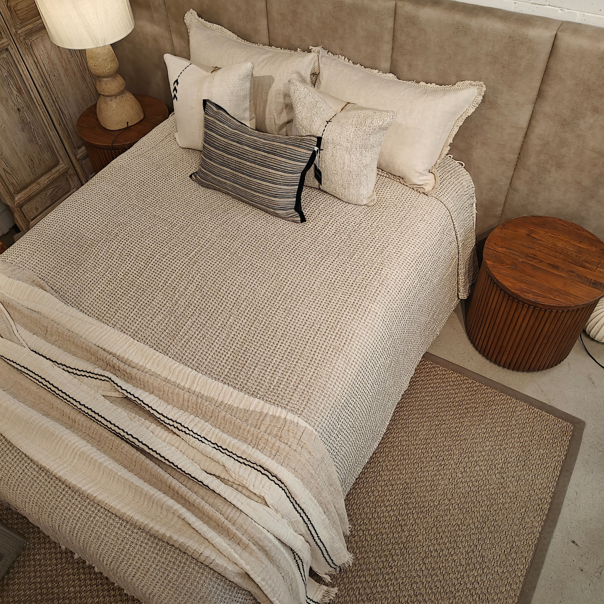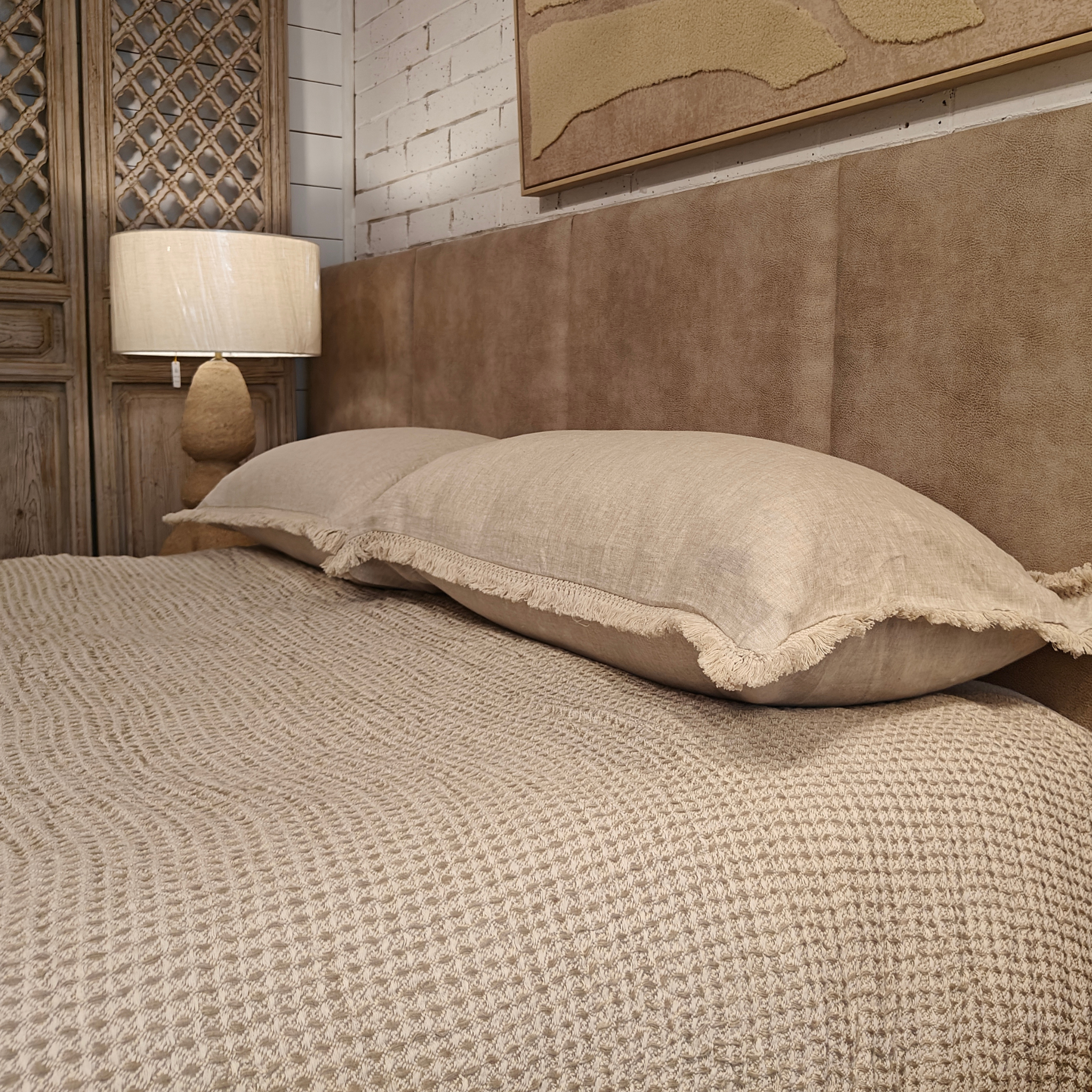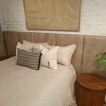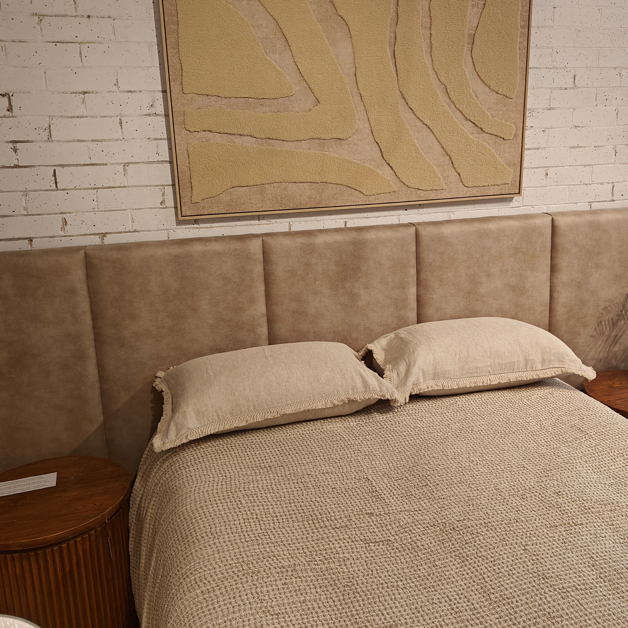 This stunning extended headboard covered in a beautiful textured Warwick fabric is customisable and available in many colours and fabric choices allowing you to create the ultimate bedroom retreat.