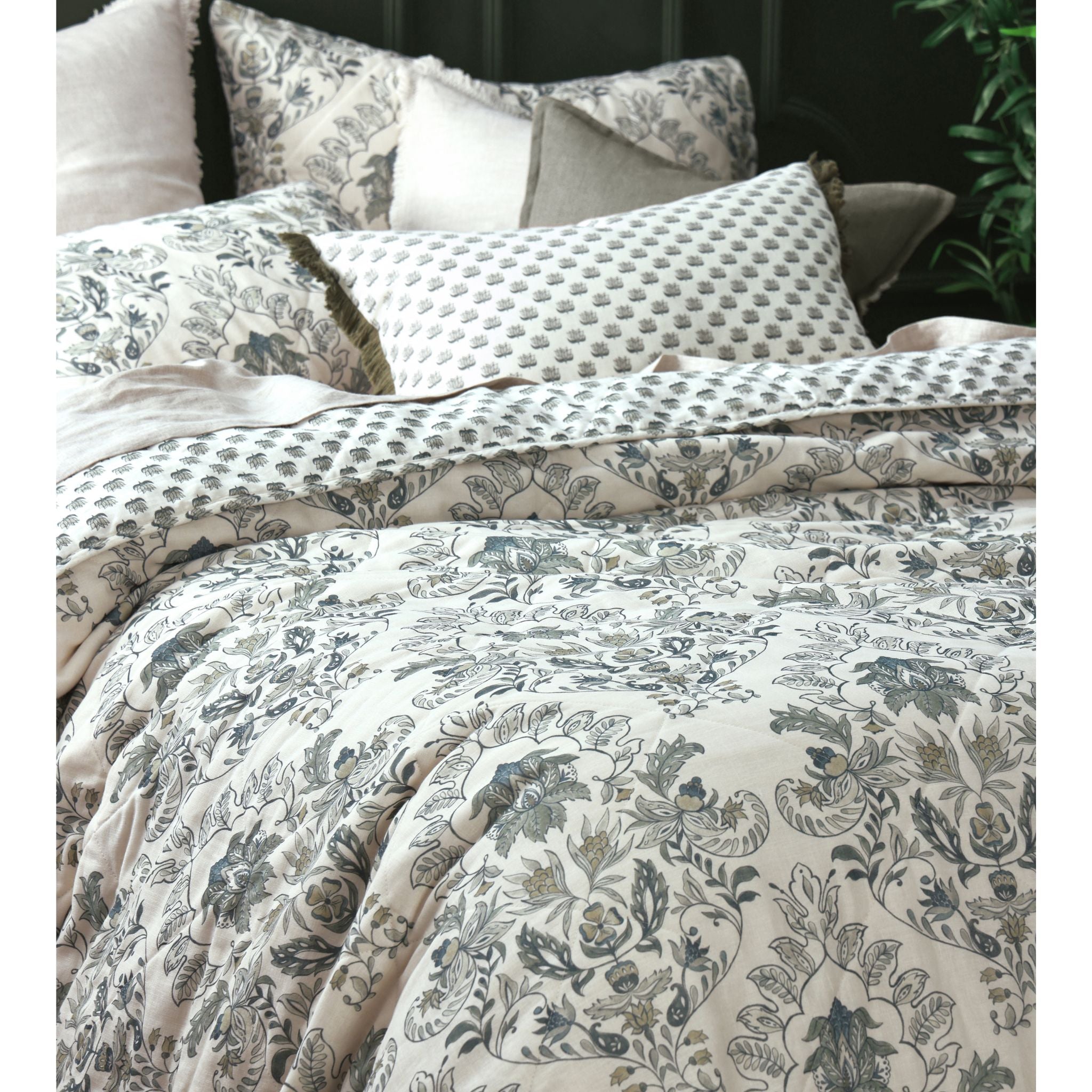 Reversible design quilted bedspread - in stylish black and white floral motif - large format design on one side and complimentary smaller design on reverse. These are sold as a set including two matching pillowcases.