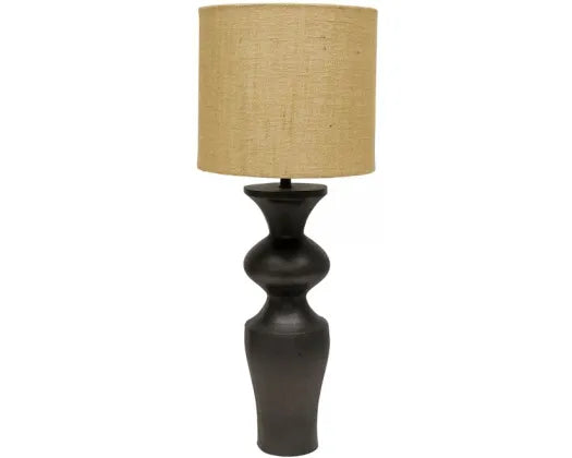 Black Aluminium Table lamp with rattan shade. perfect for bedside or anywhere you require some ambient lighting