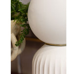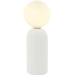 Table lamp with white plaster base - with corrugated detail. Globe opaque white shade.
