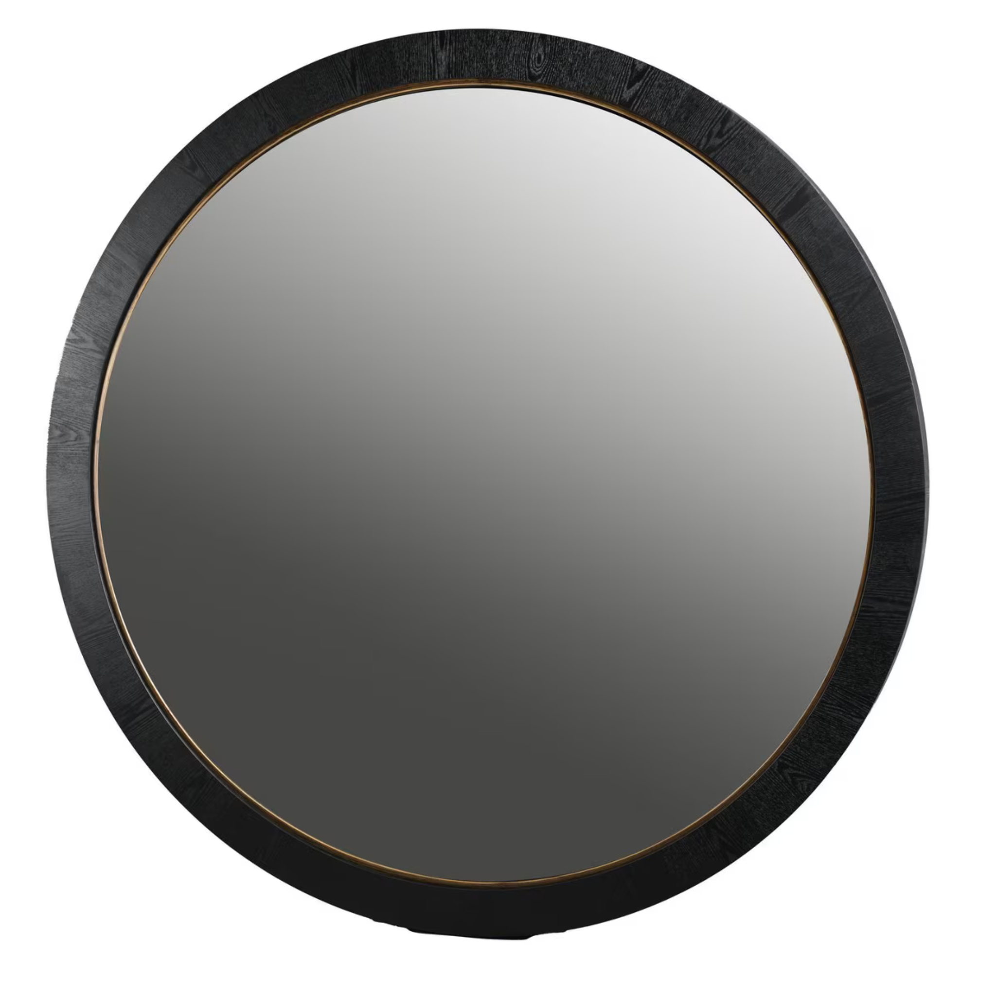 This striking round mirror - features a black oak veneer frame - with an elegant gold detail. The style is classic with a modern touch - making it a perfect accent for a traditional style or a modern home. Great for lounge rooms, dining areas, bedrooms or entryways.