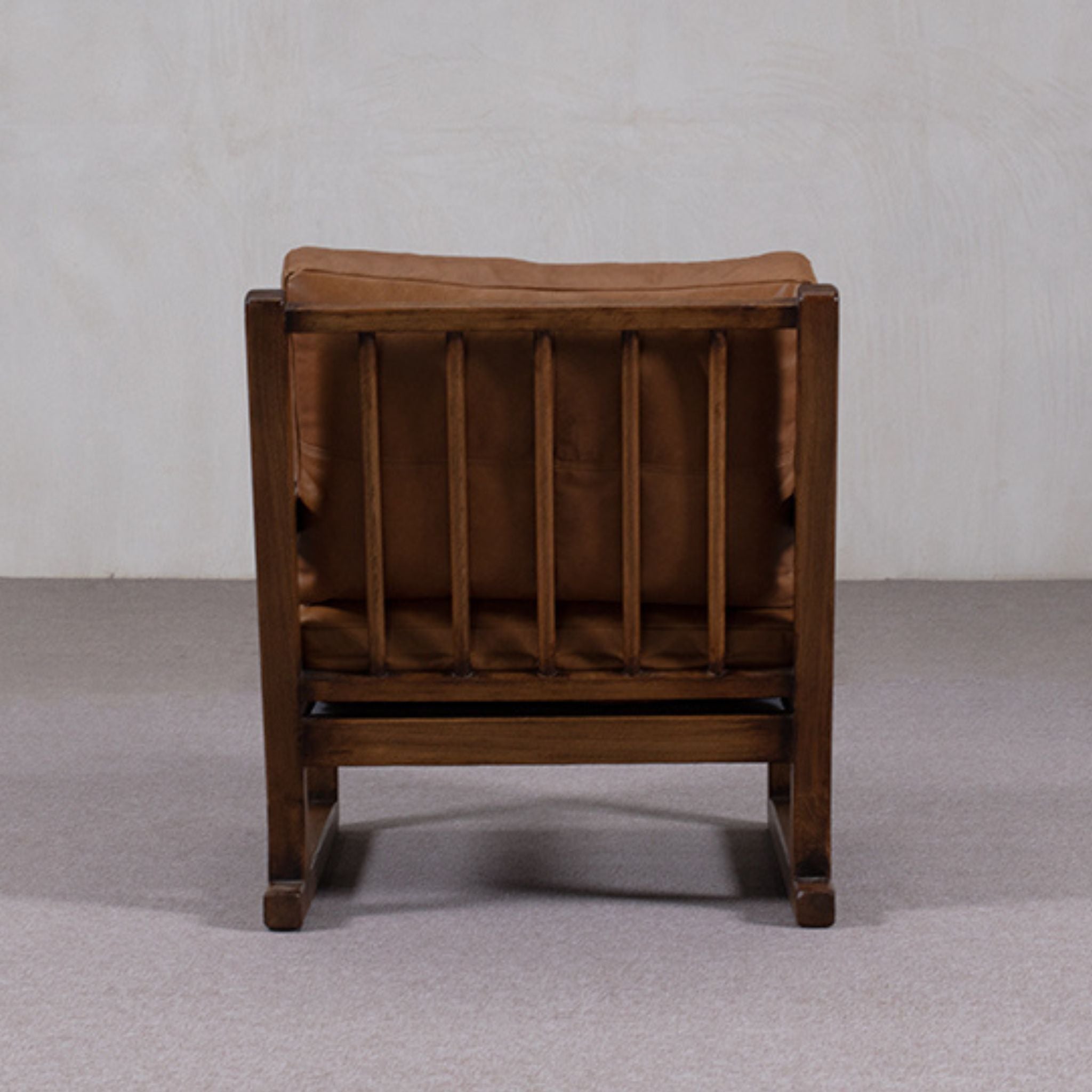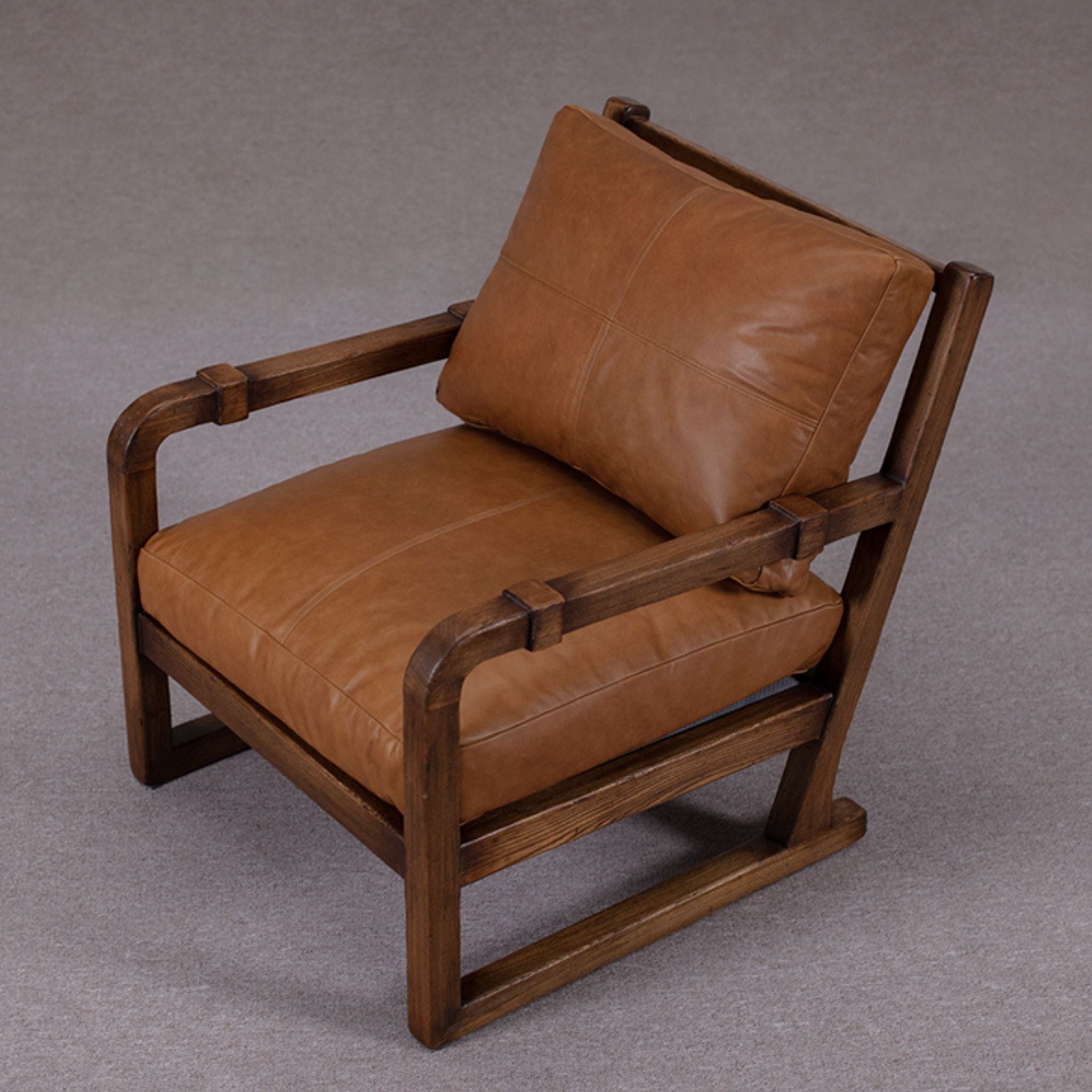 Beautiful quality occasional chair - solid oak frame in dark brown lacquer - with back and seat cushions in a tobacco leather - with stitching detail. Two available.