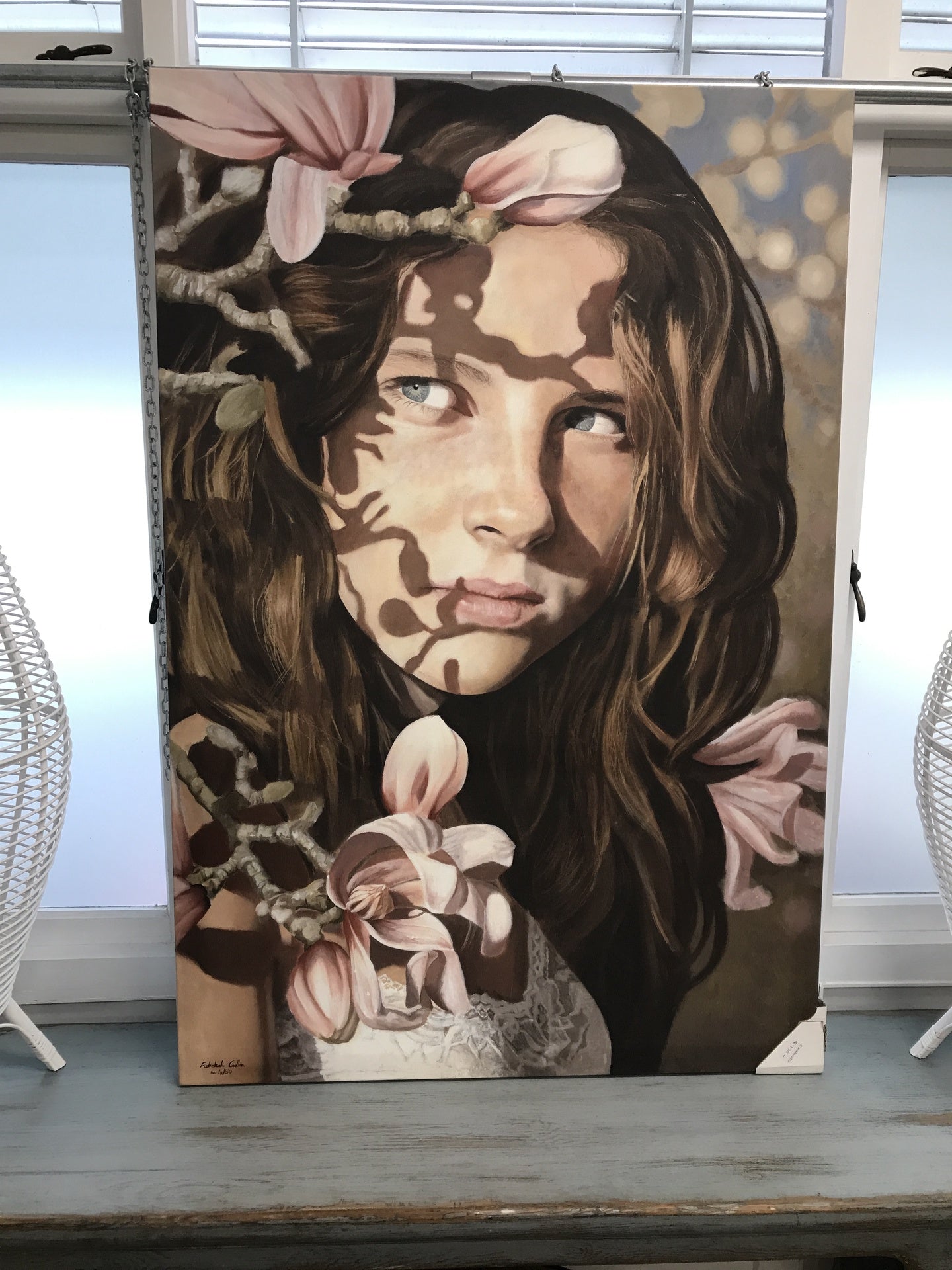 Charlotte is Rebekah’s younger sister at age 13. Rebekah painted the original 1×1.5m Acrylic aged 17 as part of her first body of works exhibited at Le Cafe Picton in 2011.