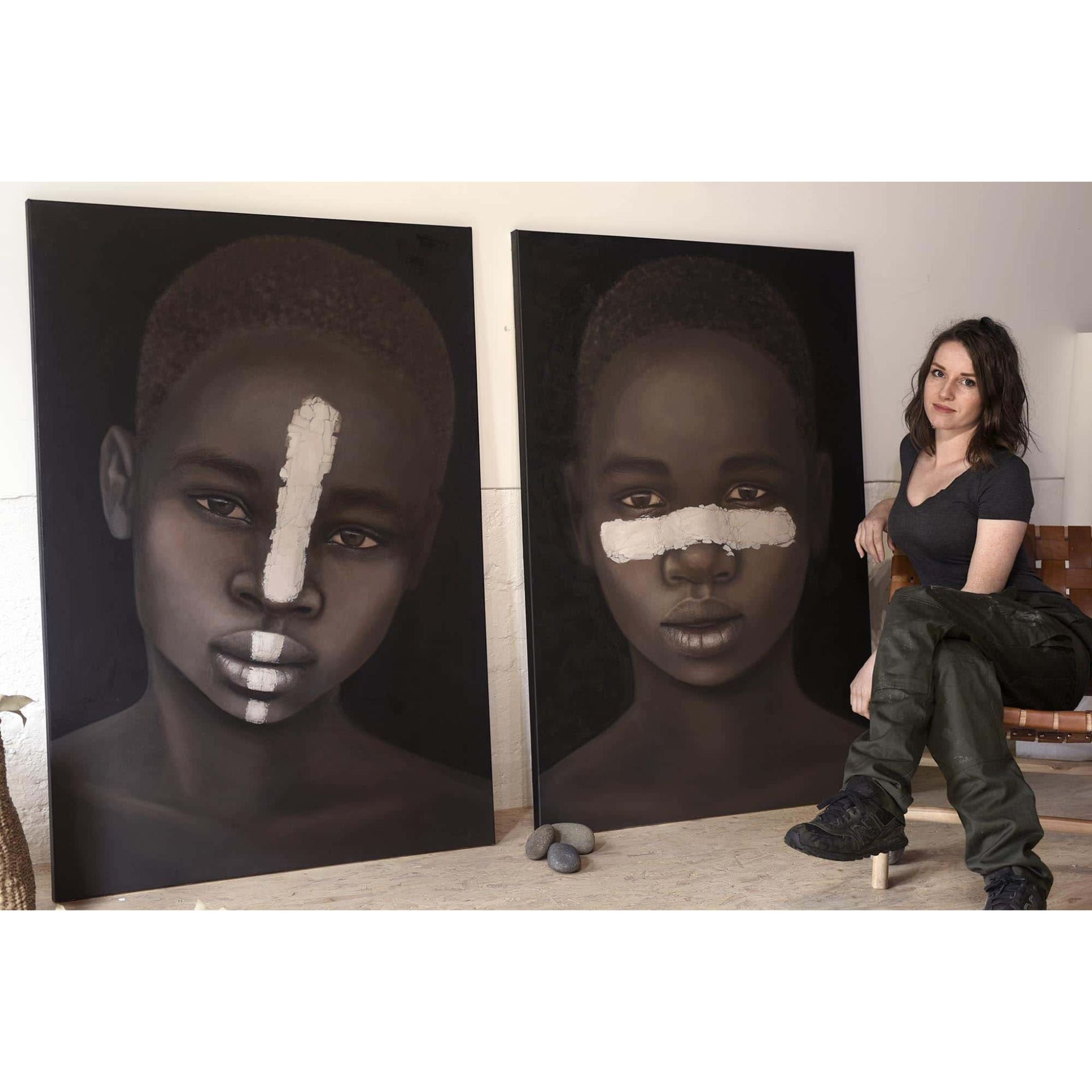 Rebekah Codlin Limited Edition Print- Safiya and Omari - the perfect pair (also available separately) Dimensions 110 x 76 ea Stretched Framed Canvas
