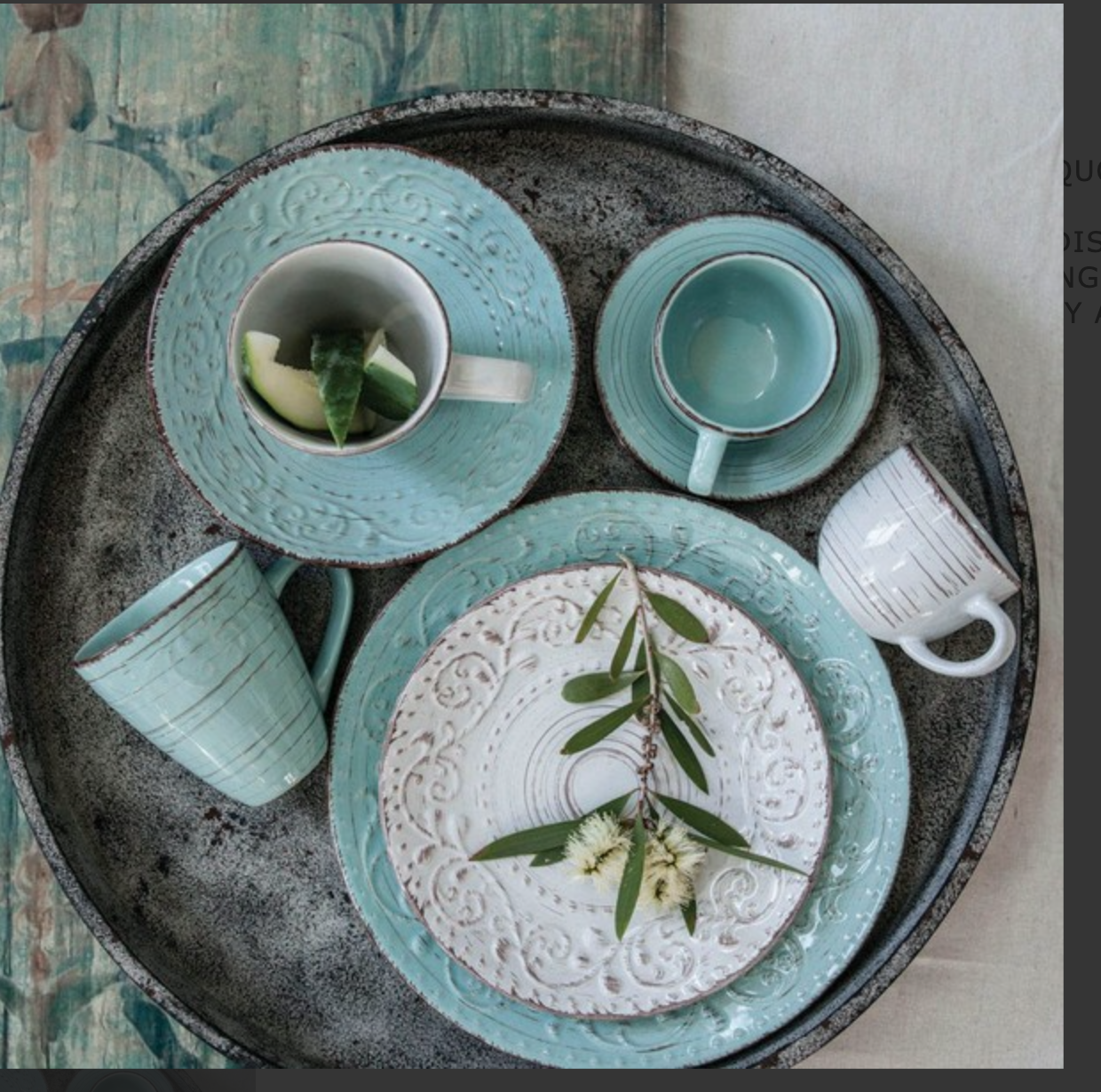 With a gentle swirling pattern, delicate beading, and antique white or duck egg blue finish the Rustic Fare dinnerware offers rustic elegance with the durability of stoneware. Mix the two colours to create an eye-catching dinner table.