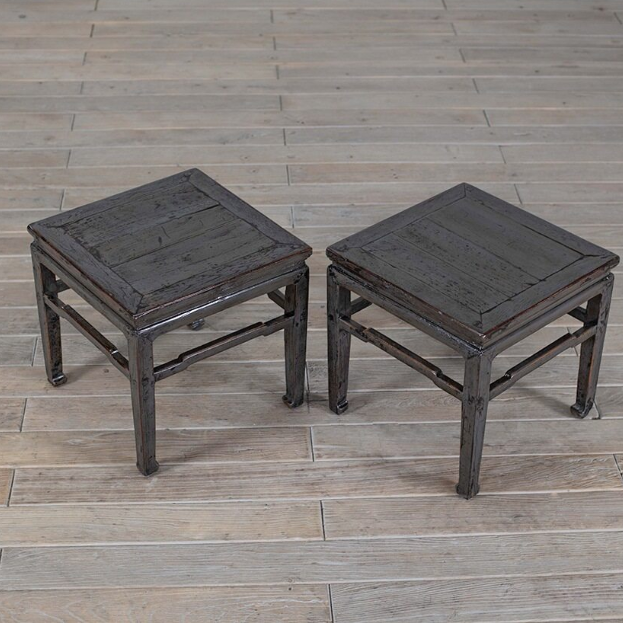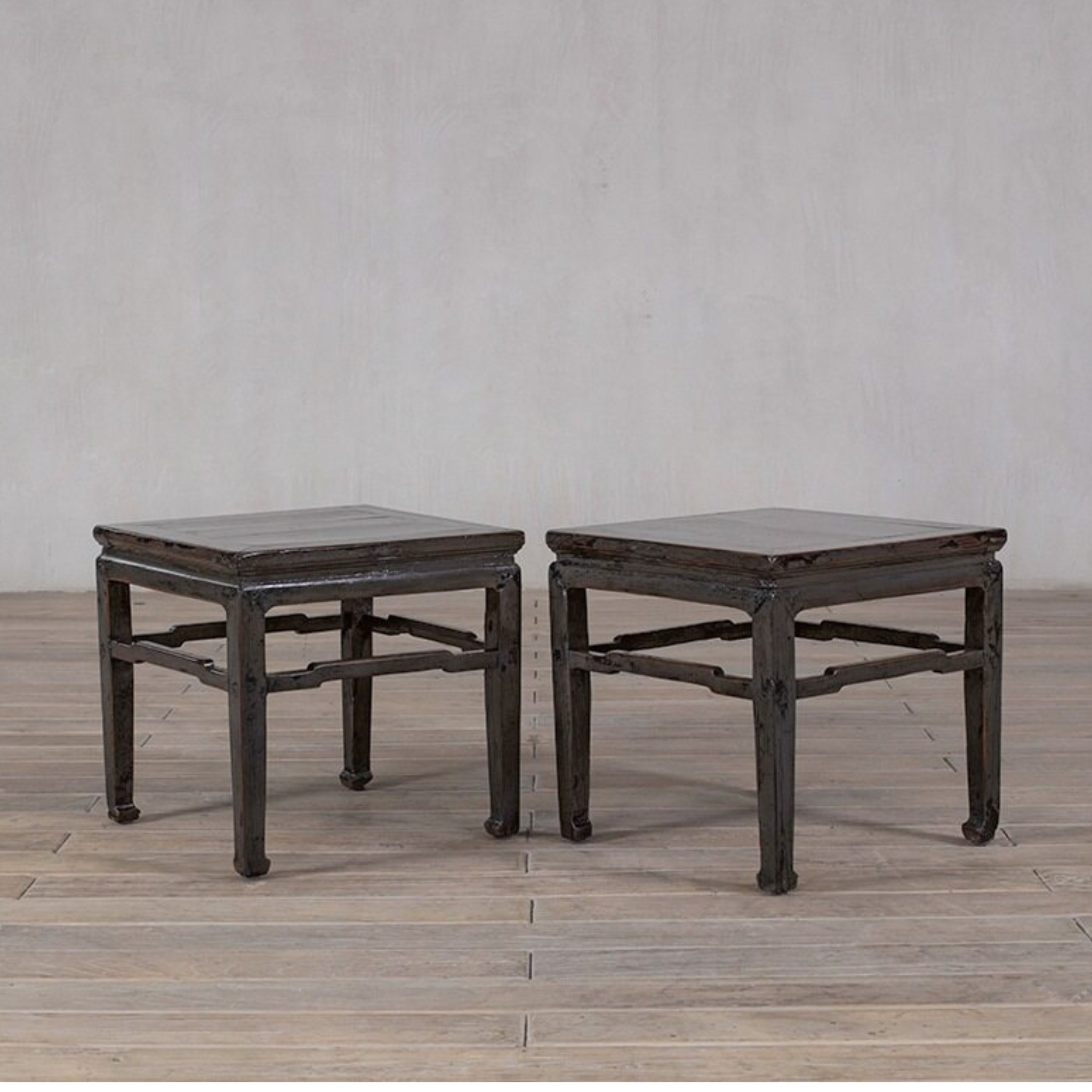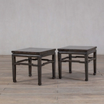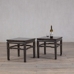 Side table (two available) - finished in olive green lacquer. The table features a rail detail.