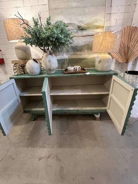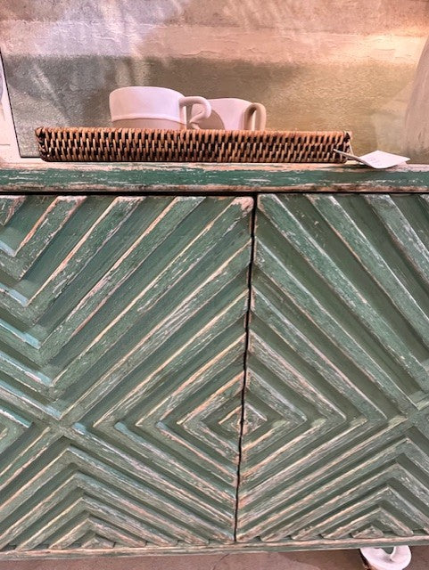 This stunning piece made out of reclaimed Manchurian pine and with fabulous carved detail will add some pizazz to your space.