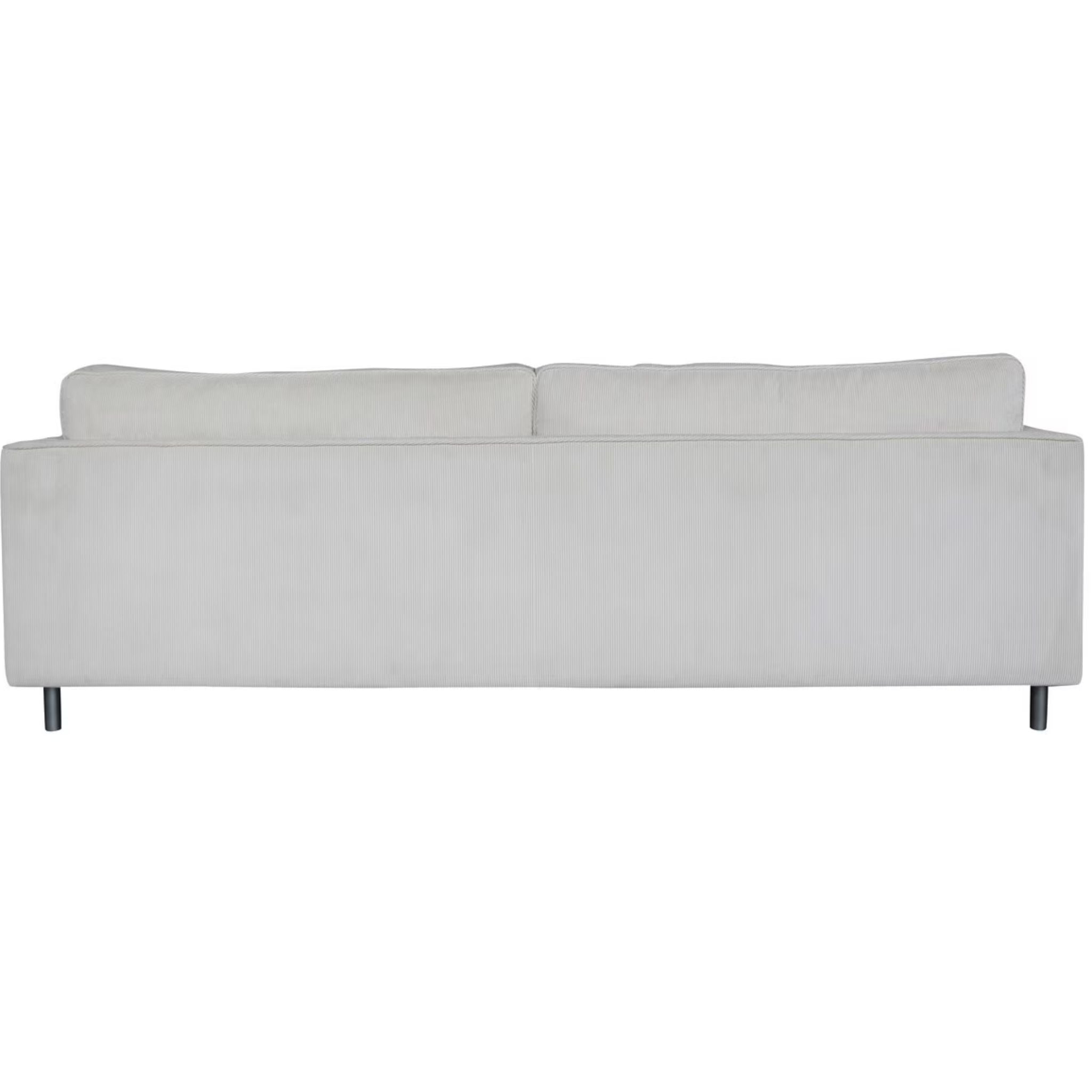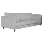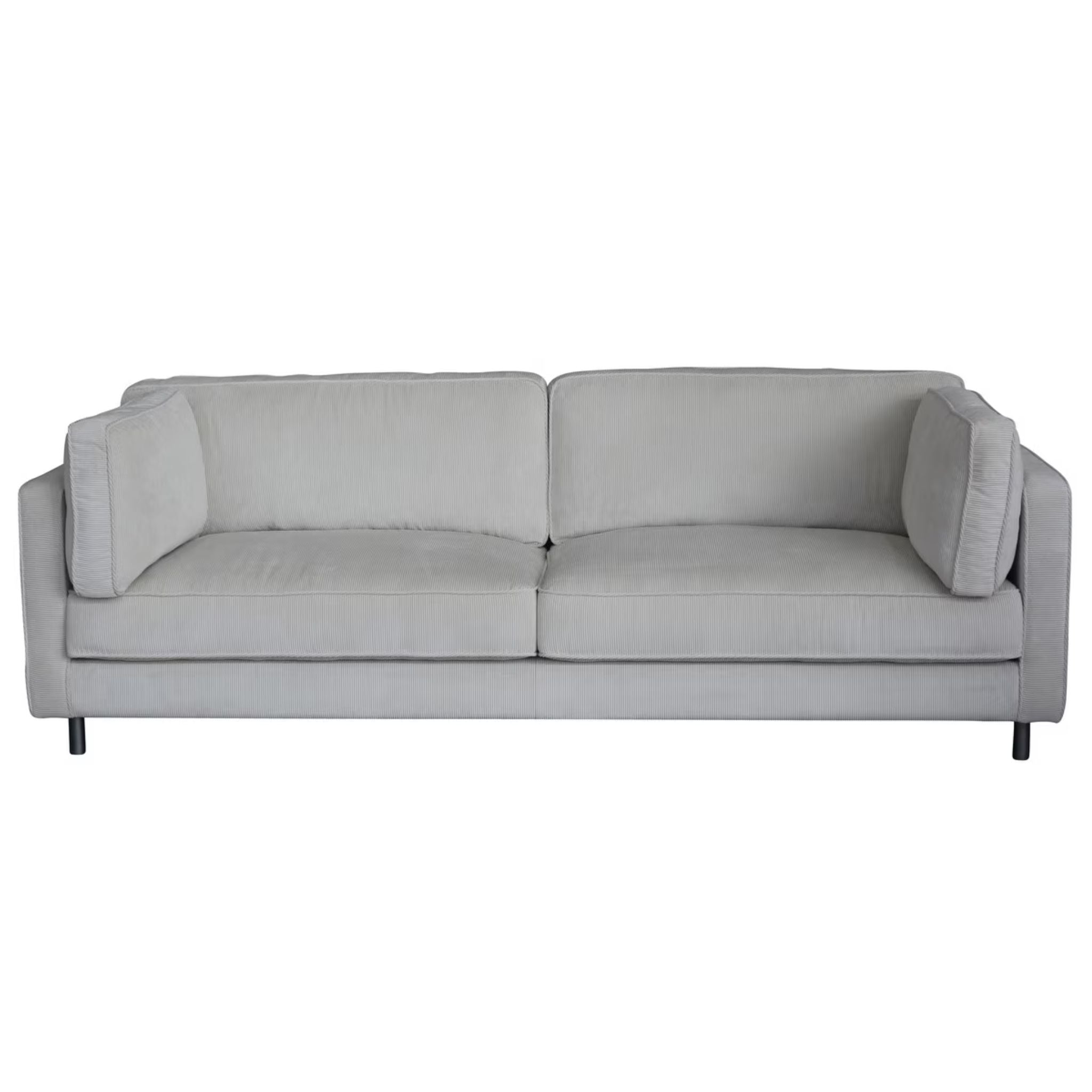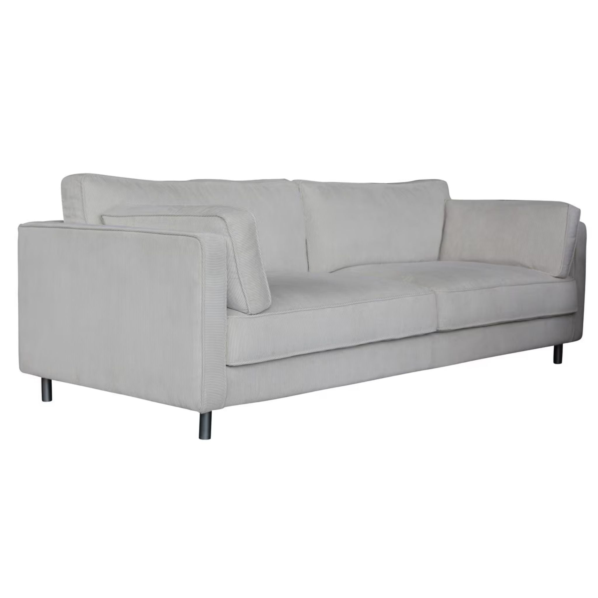 The style of this sofa is reminiscent of a mid-century modern design classic. It has two cushions on the seat base and also along the back of the sofa - plus rectangular cushions at each end. The sofa is foam filled - and upholstered in a milk coloured corduroy. It comes with self levelling adjustable legs allowing you to customise the height to your level of comfort.