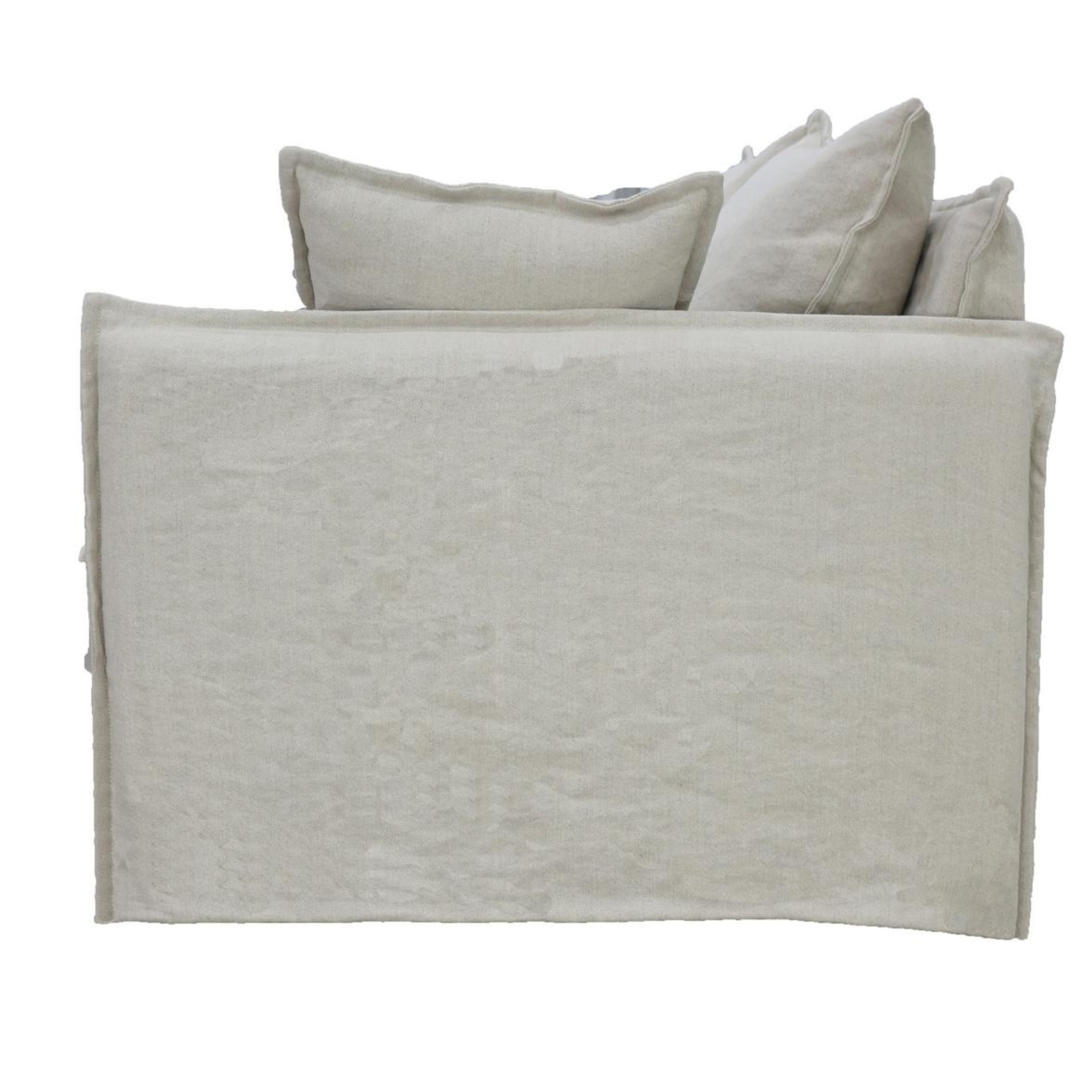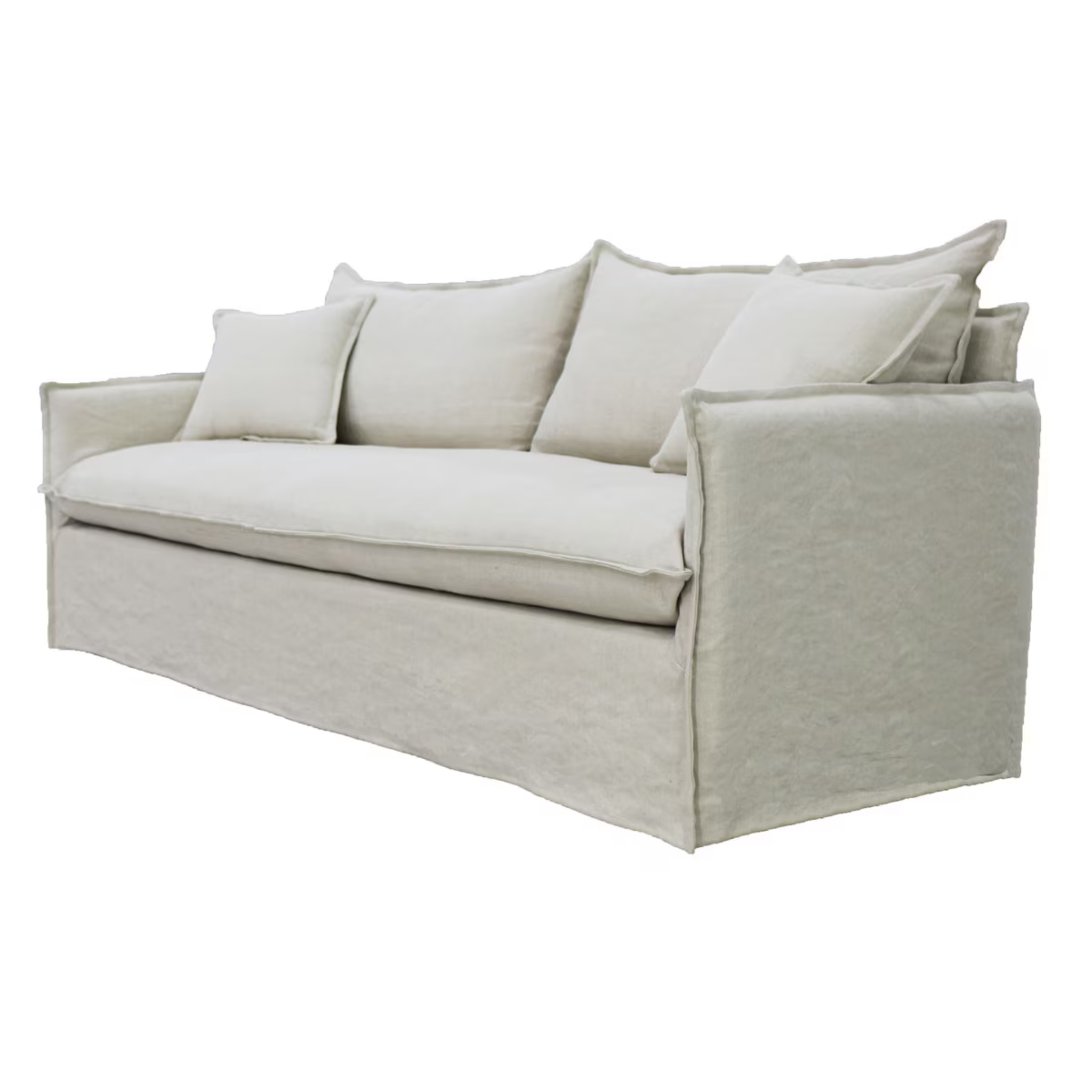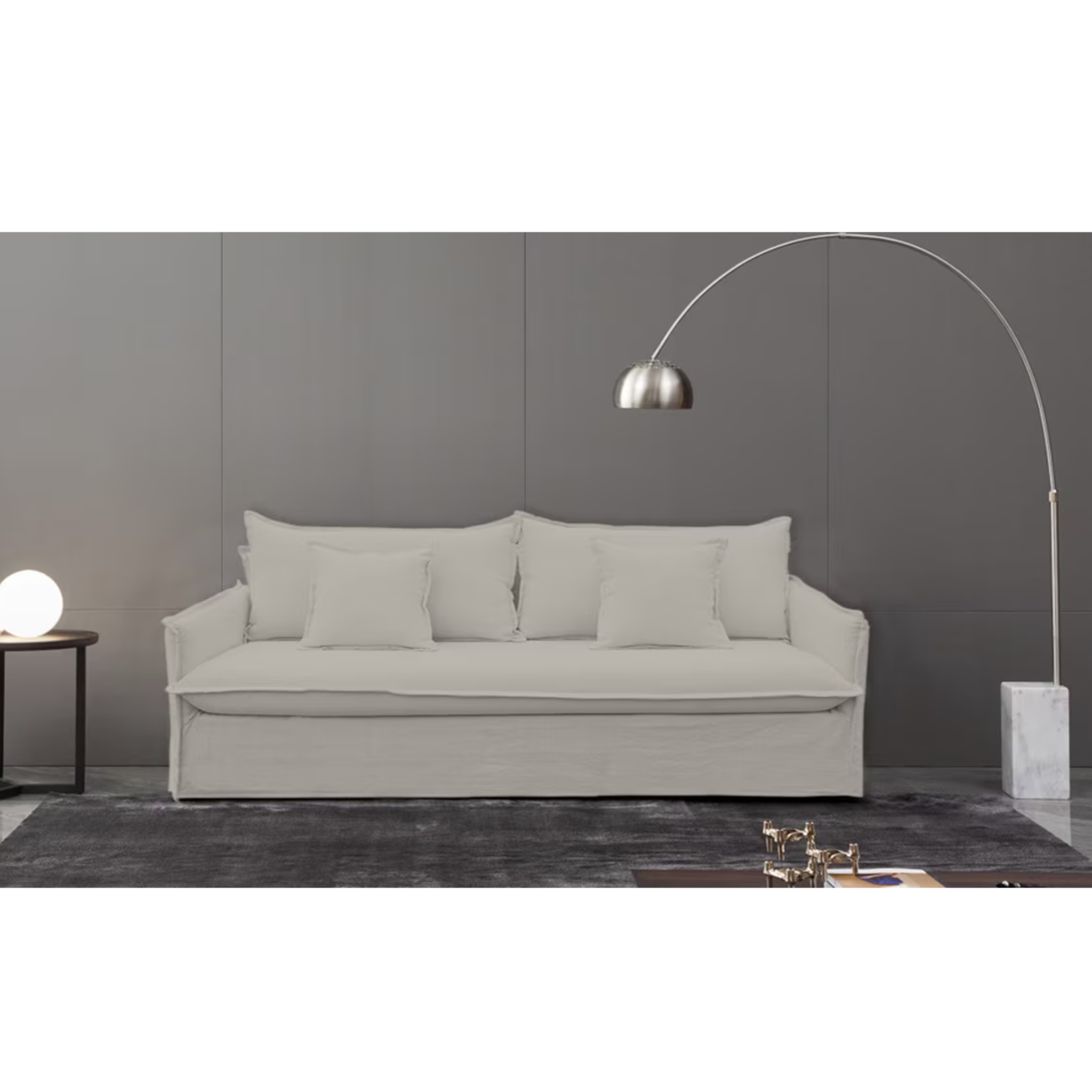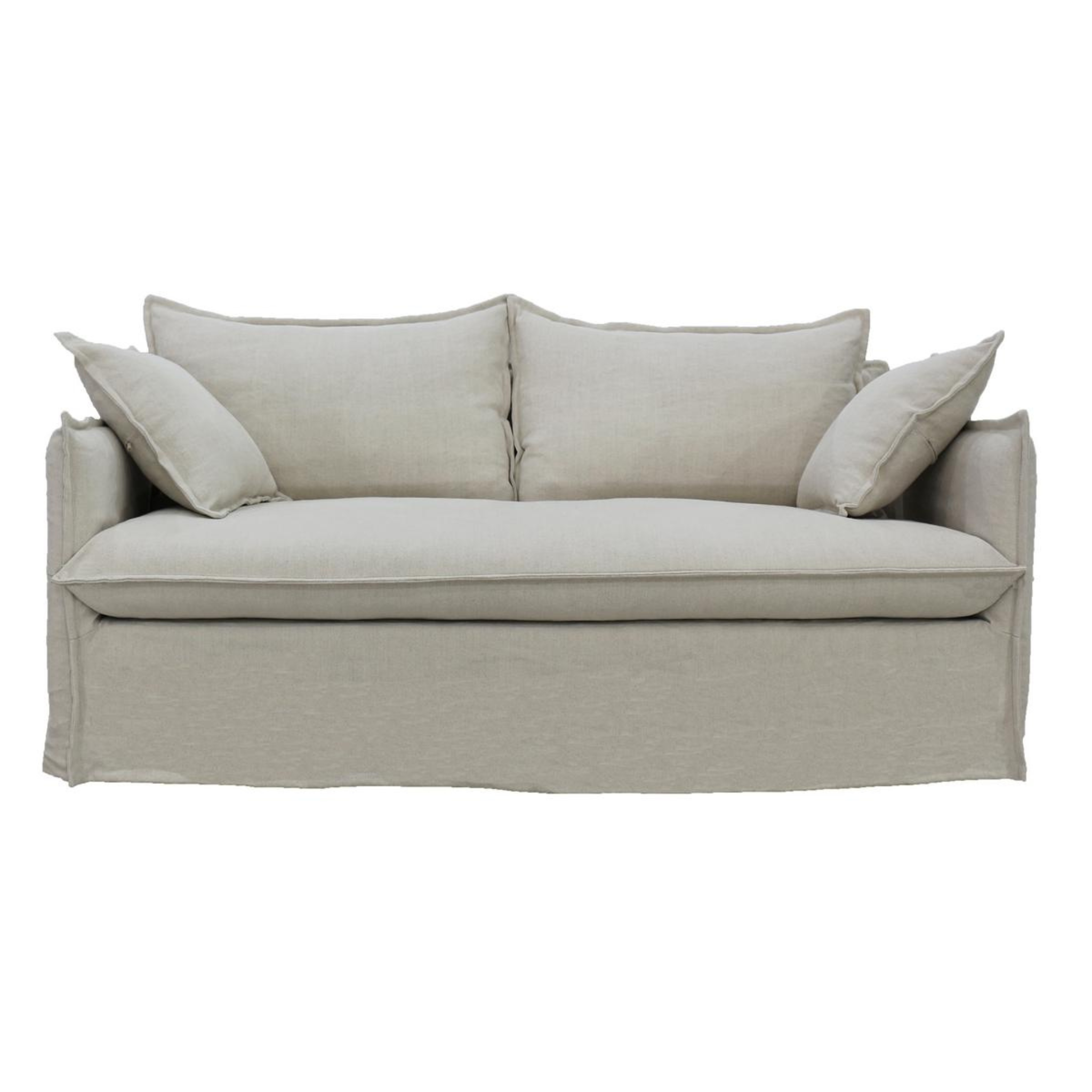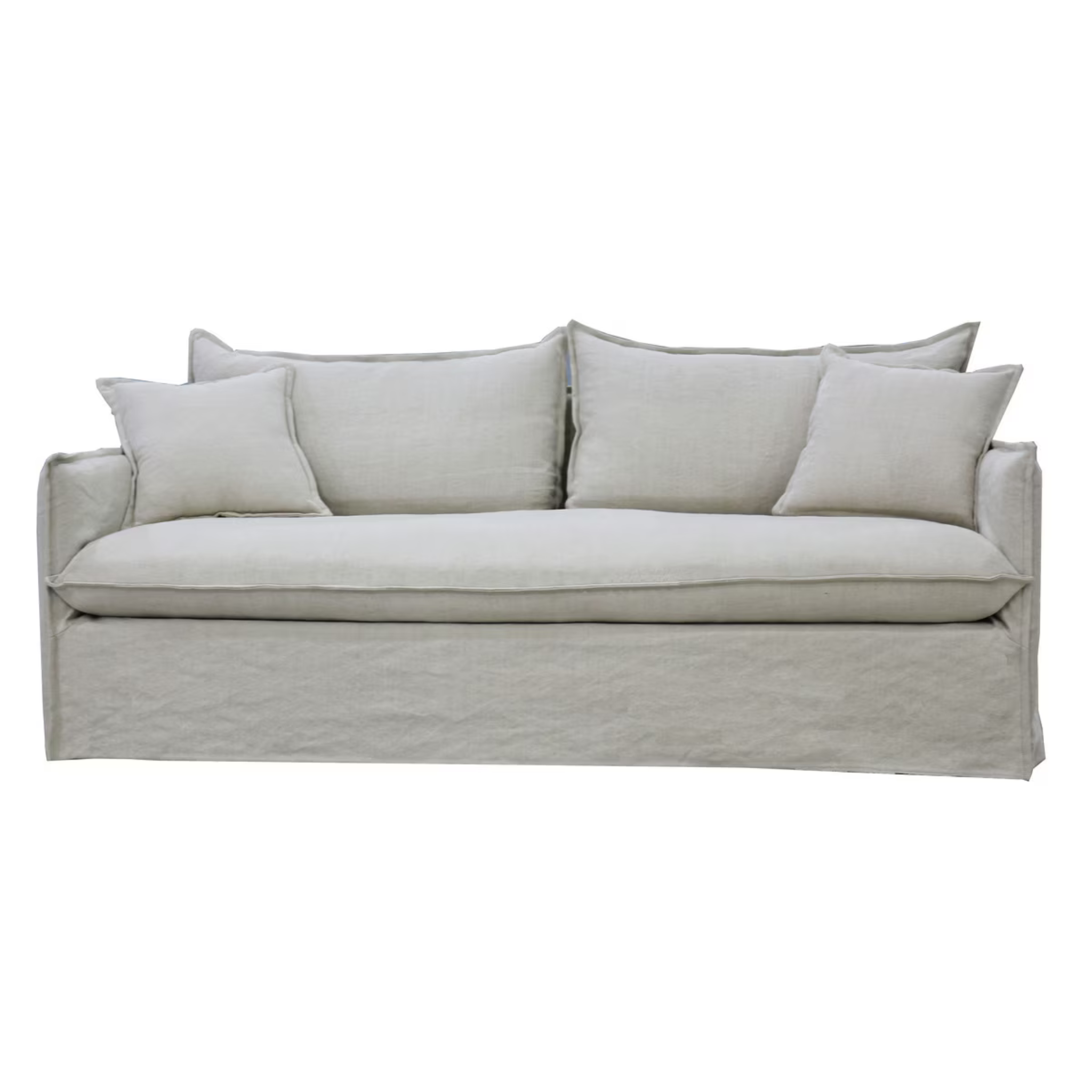 Materials Frame Pine and Plywood Fabric 40% Linen 60% Cotton Seating fill Foam with feather on 1 side Back Pillow Feather Firmness Medium