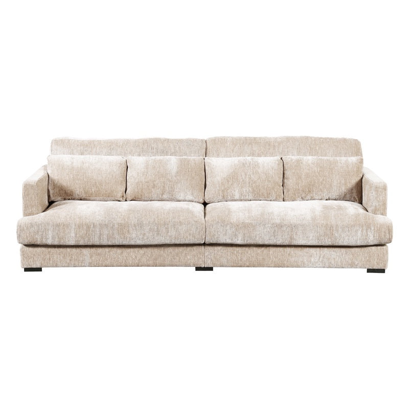 The Buxton is a stylish, large and comfortable sofa - upholstered in an on trend crushed velour. The base is split into two pieces to allow for easy installation. Two seat cushions, two back cushions and four lumbar or side cushions for comfort. Our showroom piece upholstered in a versatile neutral - ivory - but also available in grey, blush and cocoa.