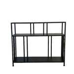 Stylish and useful - a great console for a small space. Black metal with two shelves- for display and storage - with extra metal detail. Great piece at a very attractive price!