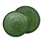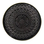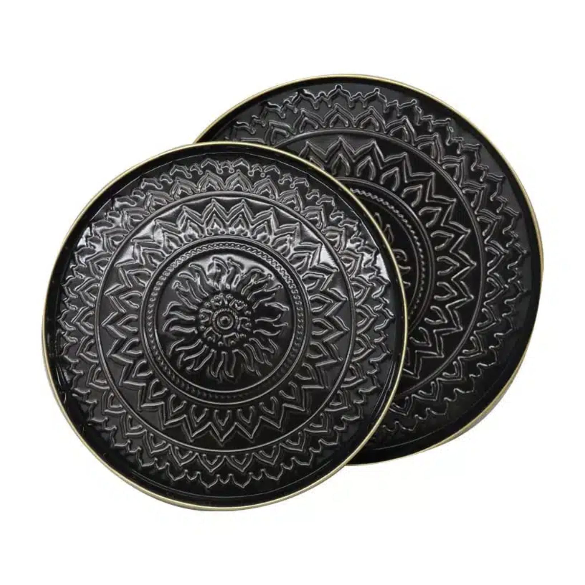 These trays are both stylish and handy - the round trays come in two sizes and two colours. They feature an aztec inspired design punched into the enamel painted finish.