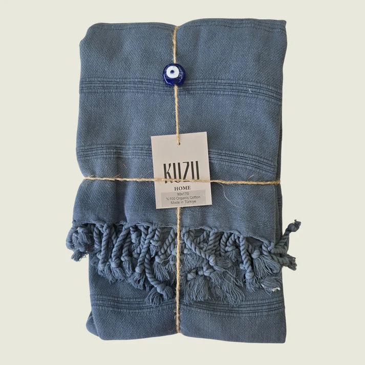 Each towel is finished with hand tied tassels and a Nazar charm, adding a beautiful touch of Turkish craftsmanship and a little bit of protection to your home. Great gift idea.