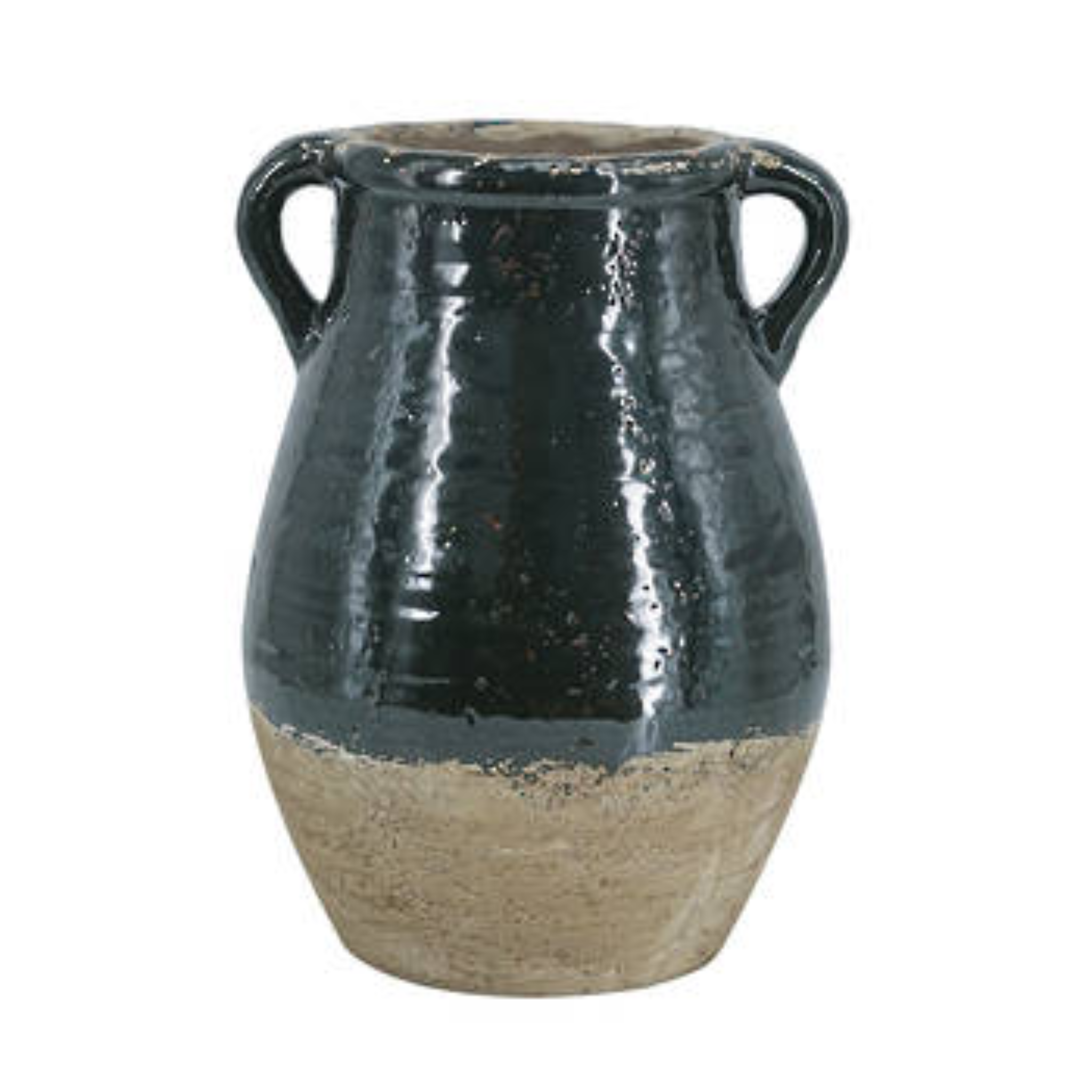 These vases are ceramics made in China - with a glossy dark green glaze top and natural terracotta below - there are two styles - amphora and round and they have a rustic feel. They are great as they are or with a floral or leafy display.