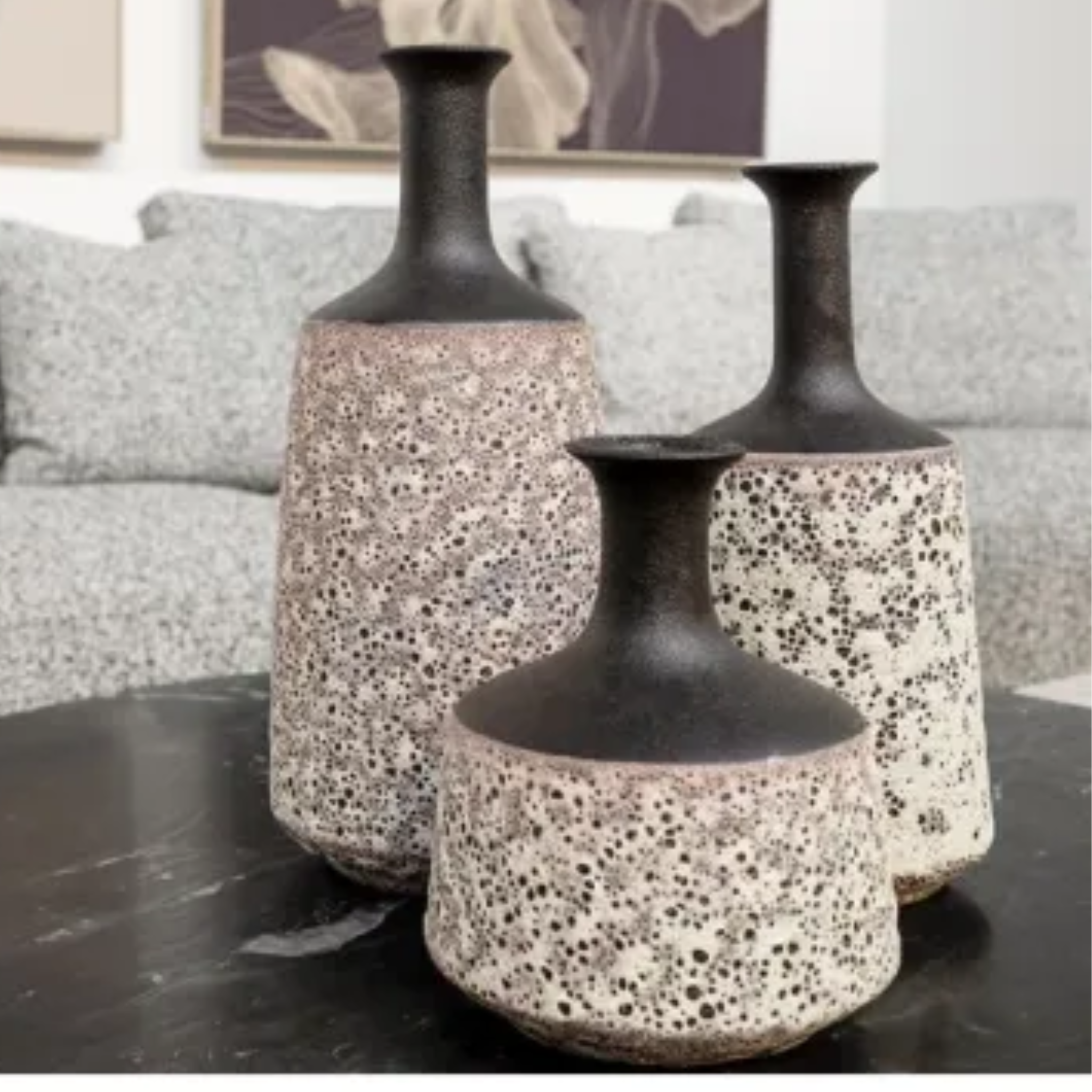 Marnie vase set - vases or vessels made from speckled black ceramic. Purchase the set of three or a single vessel - adding style and personality to your decor. The range has three sizes - Tall, Medium and Wide.